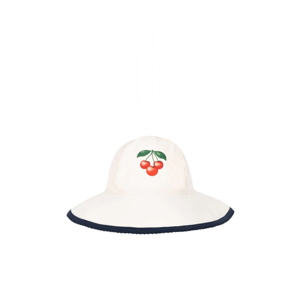 Плавальна шапка з м’якої та швидковисихаючої тканини з м’якими полями. З декоративним бантом. Застібається на шнурівку під підборіддям для зручної посадки. Захищає від сонячних ультрафіолетових променів завдяки найвищому фактору захисту від ультрафіолету UPF 40+.