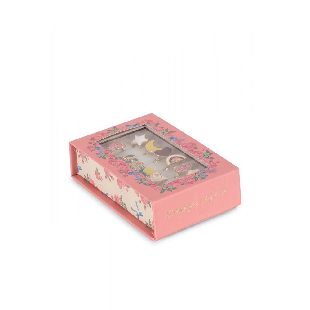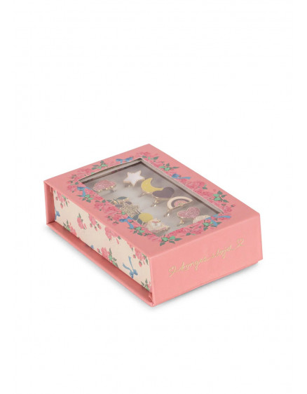 Набір із 12 предметів із регульованими кільцями, які ідеально підходять для крихітних пальчиків. Кільця на 100% не містять нікелю та легкі в носінні. Носіть їх усі одразу або по одному – вирішувати вам! Підходить від 3 років