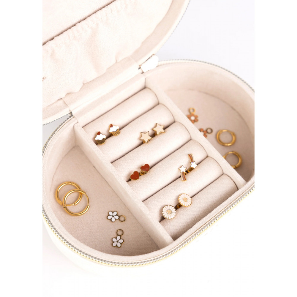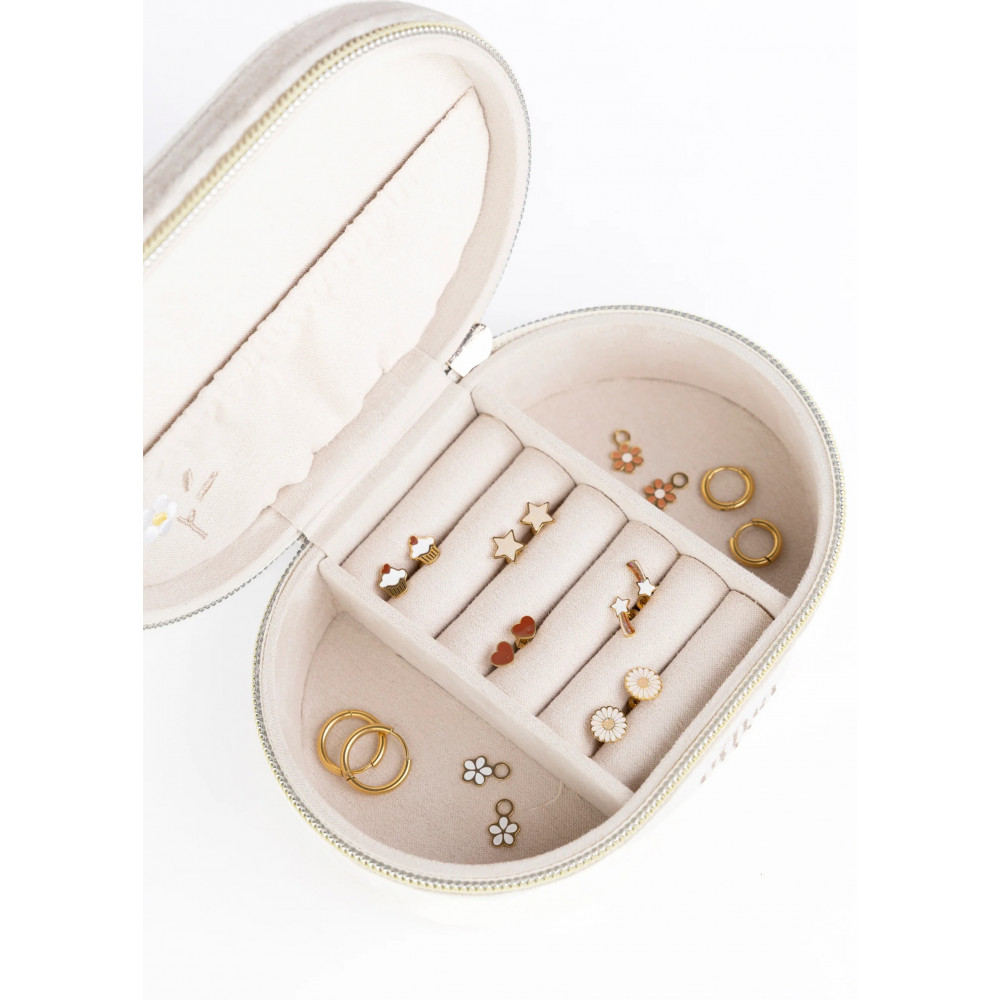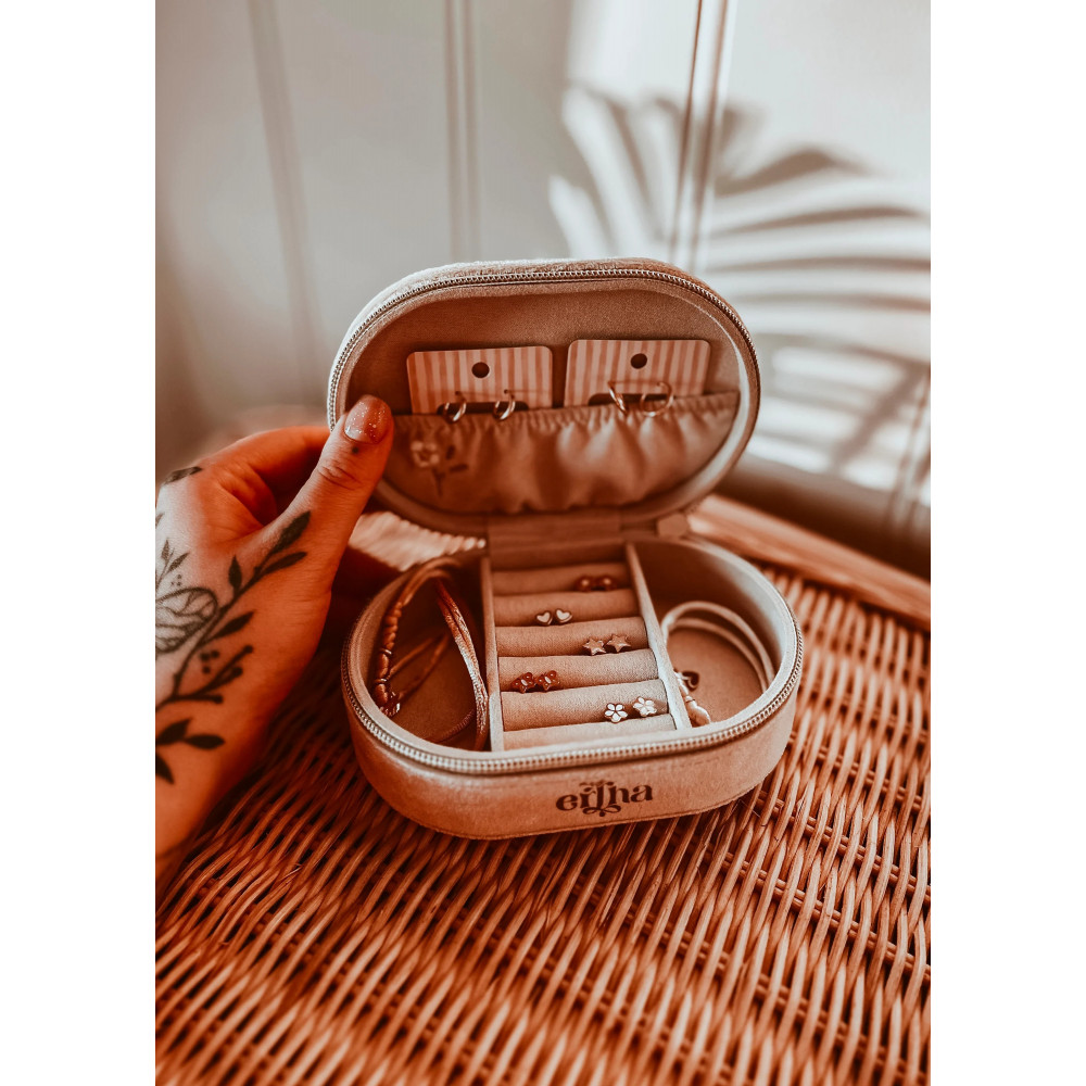 Зберігайте дитячі прикраси добре організованими та захищеними за допомогою цієї елегантної оксамитової скриньки для прикрас з ніжним вишитим візерунком та гладкою, вишуканою обробкою. Ця скринька для прикрас була ретельно виготовлена для зберігання різноманітних прикрас, від кілець та сережок до намист та браслетів, і пропонує стиль та функціональність у позачасовому аксесуарі. Завдяки м'якій оксамитовій зовнішній частині та просторим внутрішнім відділенням, це ідеальна скринька для улюблених дитячих прикрас. Розміри: 14 см x 10 см x 5 см