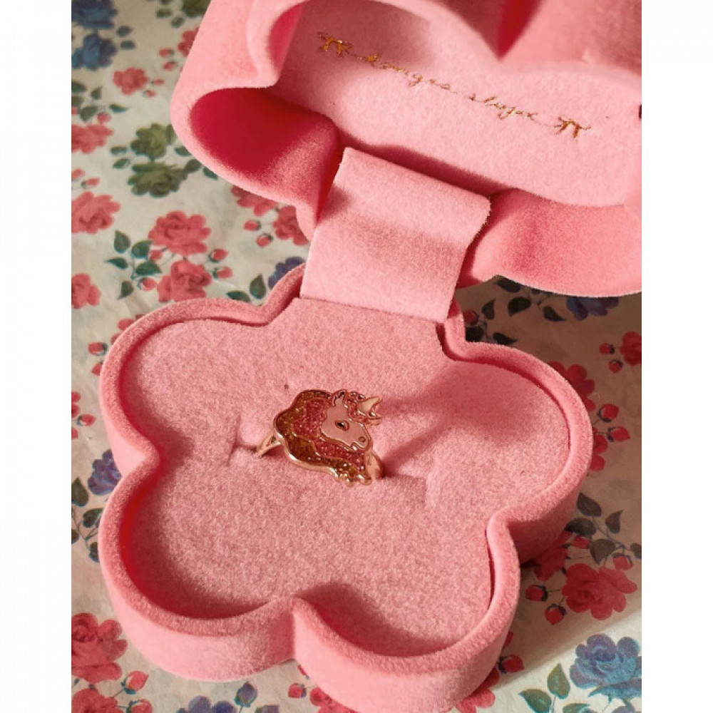 Чарівна маленька скринька для каблучок від Konges Sløjd ідеально підходить для зберігання невеликих прикрас. Вибирайте між ніжним кексом із кільцем вишні або красивою квітковою коробкою з кільцем єдинорога – обидва такі ж чарівні, як і їхній вміст. М'яка оксамитова поверхня надає коробочці розкішний відтінок, а каблучка, звичайно, не містить нікелю, тому вона абсолютно безпечна для вашої дитини.