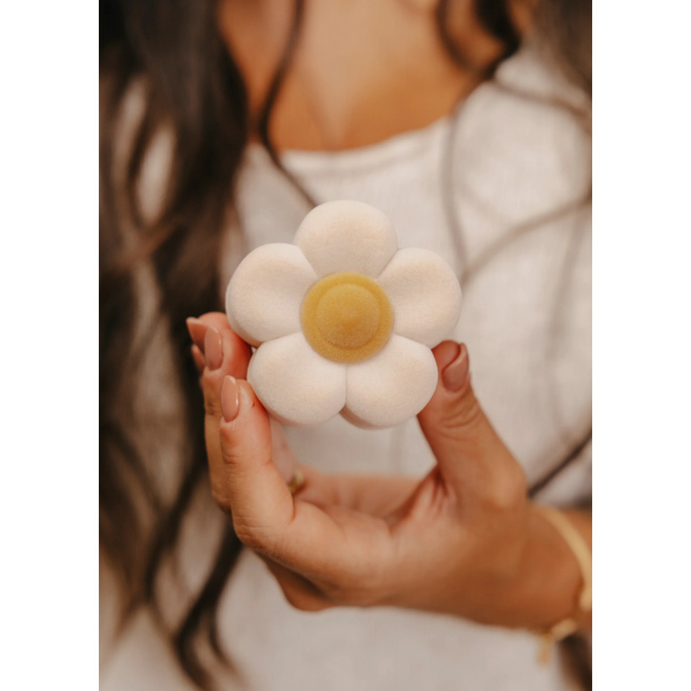 Ця мініатюрна скринька для коштовностей у формі ромашки була створена для зберігання та пропонування витончених виробів з нашої колекції ювелірних виробів, таких як сережки, кільця або браслети. ? Виготовлена в м'яких нейтральних тонах та оздоблена нашим логотипом, вигравіруваним золотом, скринька поєднує в собі легкість природи з вишуканою турботою нашого бренду. Ідеально підходить для особливих подарунків. Виріб, створений для того, щоб зберігати не просто коштовності – він зберігає моменти та спогади. Розмір: 4 см x 4 см x 6 см