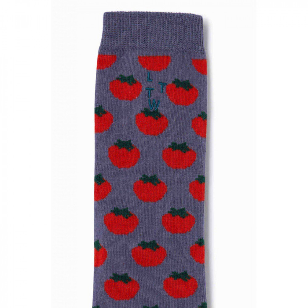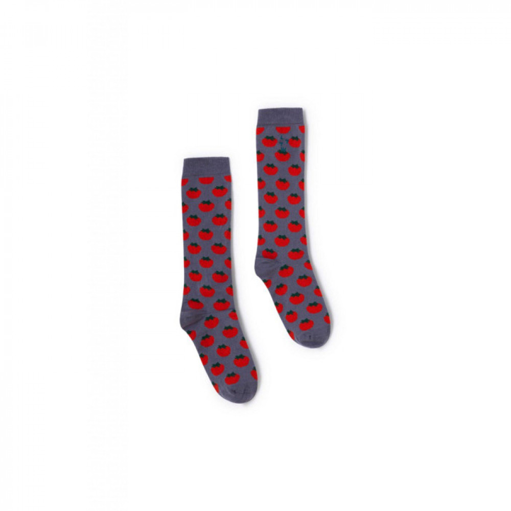 Tрикотажні шкарпетки середньої посадки штормового кольору. Розроблено з повним принтом помідорів.