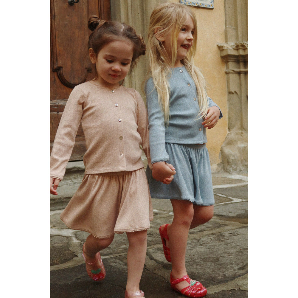 М'який та еластичний кардиган у ребристу тканину, який можна носити окремо як блузку або як класичний кардиган. Roli – це ідеальний повсякденний виріб, виготовлений із суміші органічної бавовни з невеликою кількістю люрексу для блиску. Дизайн з декоративними краями піко навколо лінії горловини. Цей виріб містить щонайменше 50% бавовни, сертифікованої OCS.
