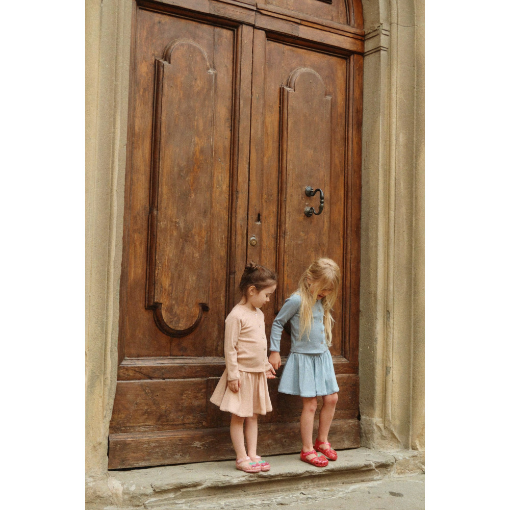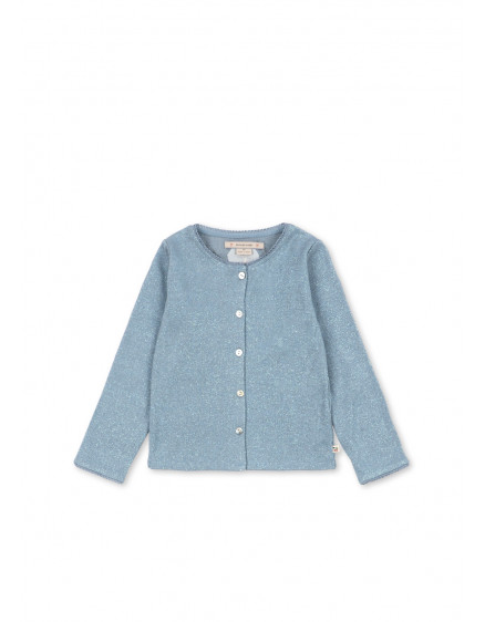 М'який та еластичний кардиган у ребристу тканину, який можна носити окремо як блузку або як класичний кардиган. Roli – це ідеальний повсякденний виріб, виготовлений із суміші органічної бавовни з невеликою кількістю люрексу для блиску. Дизайн з декоративними краями піко навколо лінії горловини. Цей виріб містить щонайменше 50% бавовни, сертифікованої OCS.