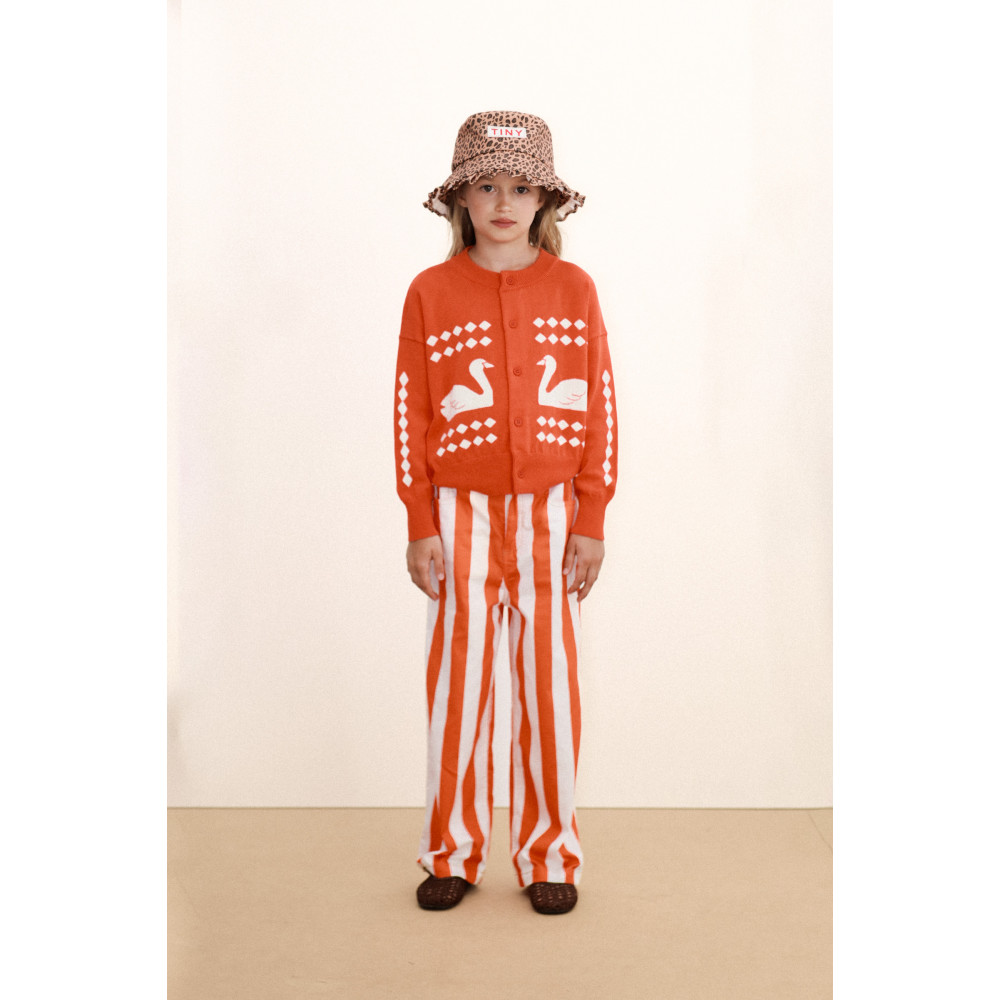 Цей кардиган з інтарсійним візерунком «Swans Diamonds», виготовлений з м’якої 100% бавовни з ультрамариновою основою, має ніжну, комфортну текстуру. Він має оздоблення на рукавах і подолу, а також круглий виріз горловини, який додає класичного штриха силуету. Застібка на ґудзики та ребристі манжети поєднують затишок та комфорт зі стильними деталями, ідеально підходить для щоденного носіння.