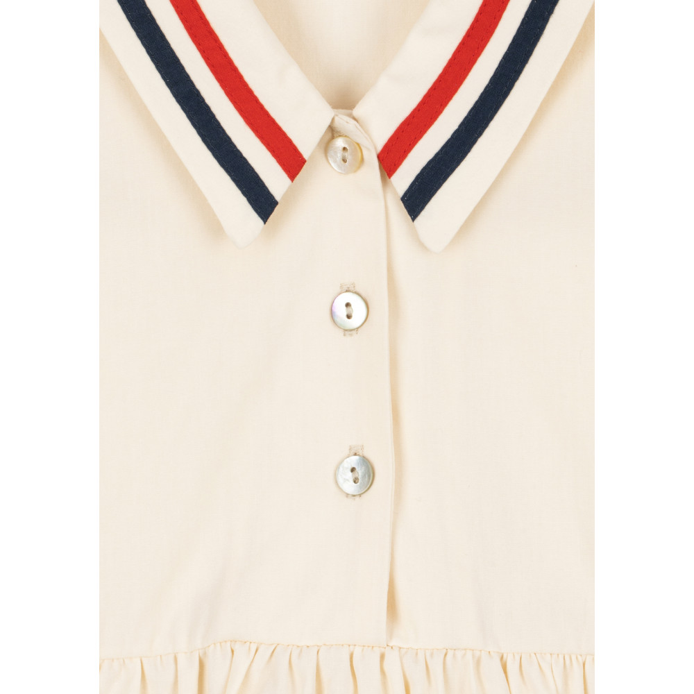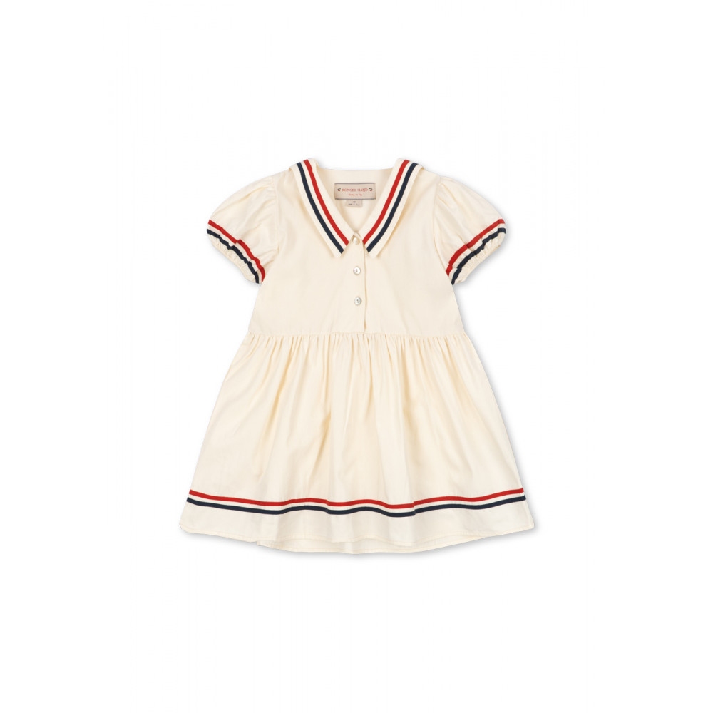 Сукня в моряцькому стилі з м'яким силуетом, великим морським коміром та пишними рукавами. Зібрана на талії для створення привабливого силуету.