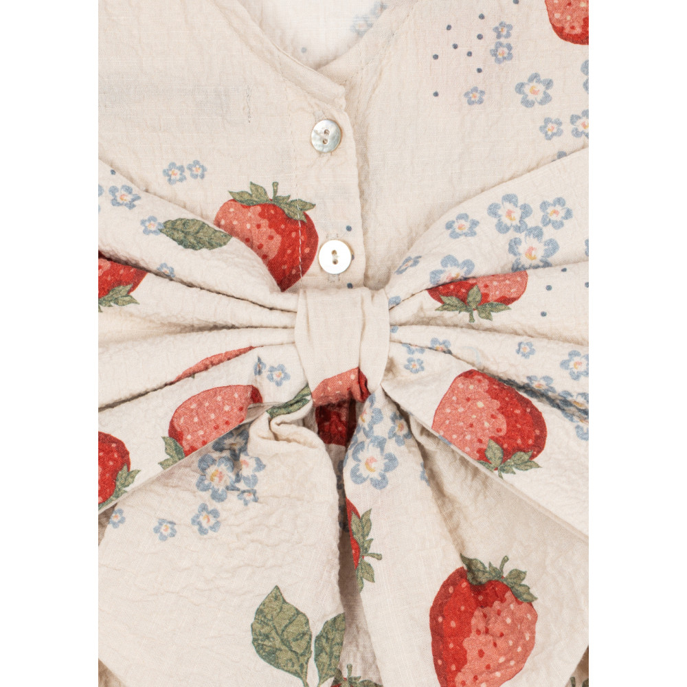 М'яка та легка літня сукня з дихаючої органічної бавовни. Модель має завужену талію та пишну спідницю, а також великий бант ззаду як ідеальний завершальний штрих.