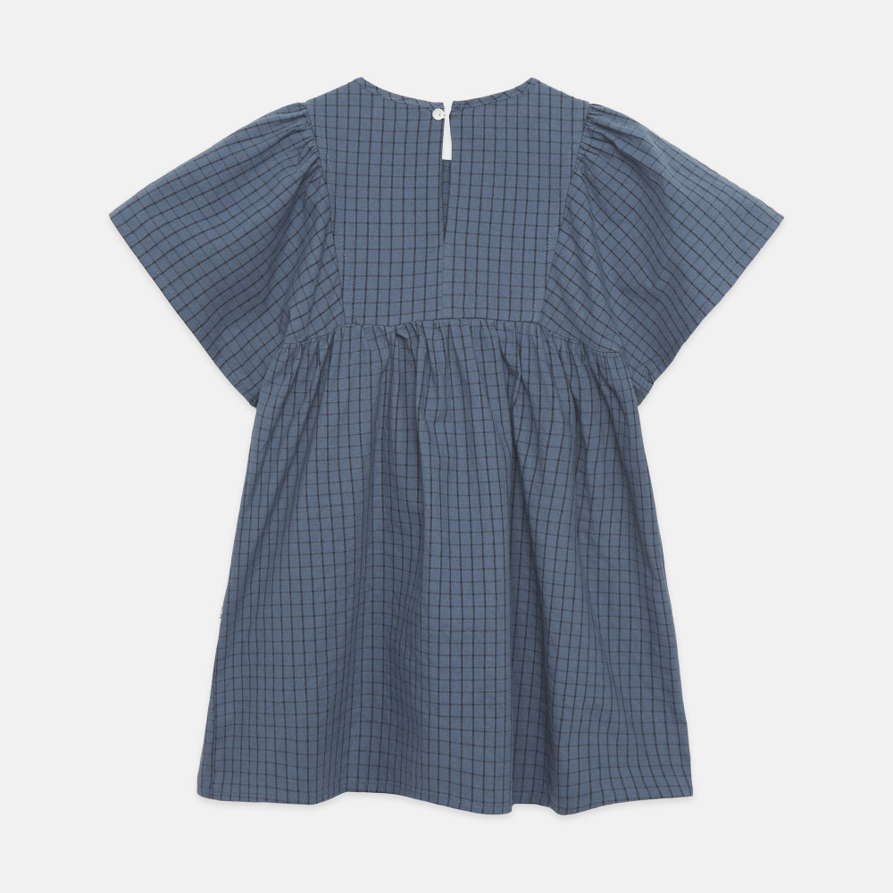Чарівна сукня, сповнена витончених деталей! Виготовлена з м'якої органічної бавовни, ця картата сукня має витончені рукави-метелики та миле вишите цуценя на грудях, що додає грайливості класичному дизайну.