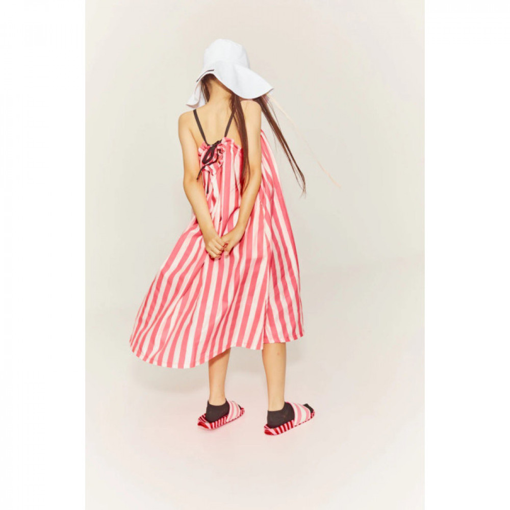 Вільна, плавна посадка, яка спадає до середини гомілки. Доповнюється чорними ремінцями, які додають сміливого штриха загальному образу. Легке, зручне в носінні плаття.