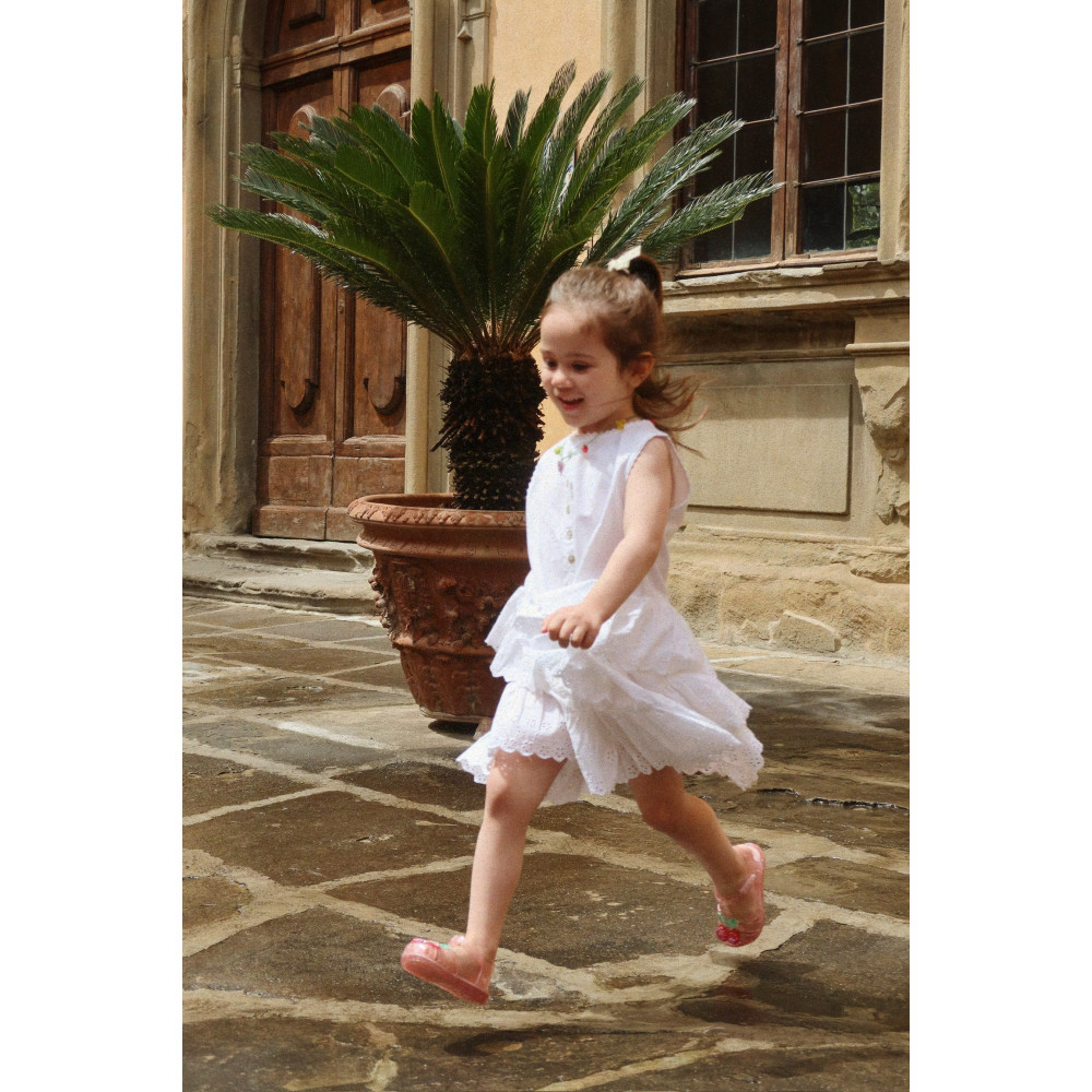 Літня сукня з органічної бавовни з ніжною обробкою з люверсів по низу верхньої частини та об'ємною спідницею з м'якими шарами романтичної англійської вишивки. Класичний літній виріб, який можна носити для будь-яких подій: від урочистих подій до повсякденних моментів.