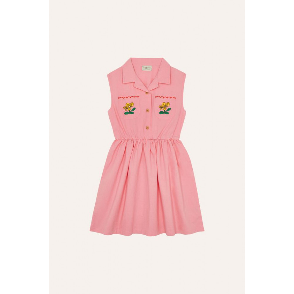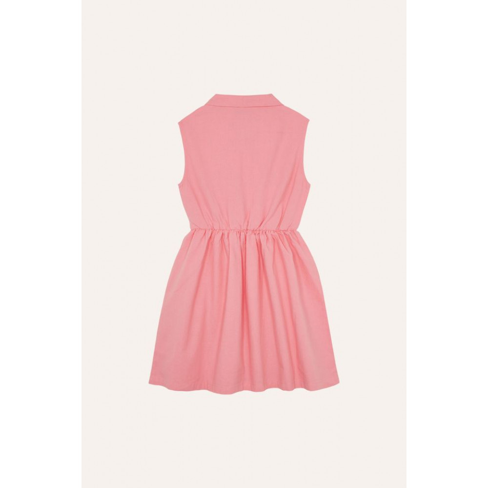 Ця рожева сукня ідеально підійде для прохолоди в найспекотніші дні. Без рукавів і з коротким коміром, що надає їй ретро- та сучасного вигляду.