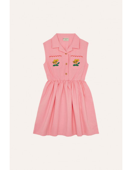 Ця рожева сукня ідеально підійде для прохолоди в найспекотніші дні. Без рукавів і з коротким коміром, що надає їй ретро- та сучасного вигляду.