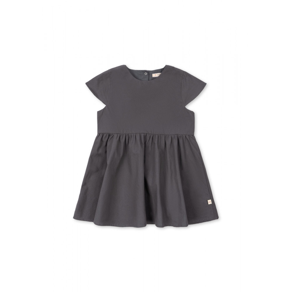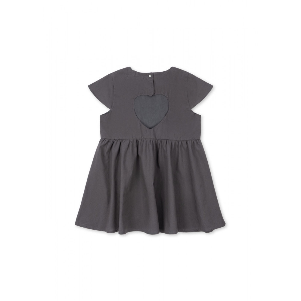 М'яка бавовняна сукня вільного крою з повсякденним вирізом. Спинка сукні має виріз у формі серця, акуратно оброблений прострочкою по краях, що надає їй чіткого контуру та додає грайливого, романтичного відтінку простому та елегантному дизайну.
