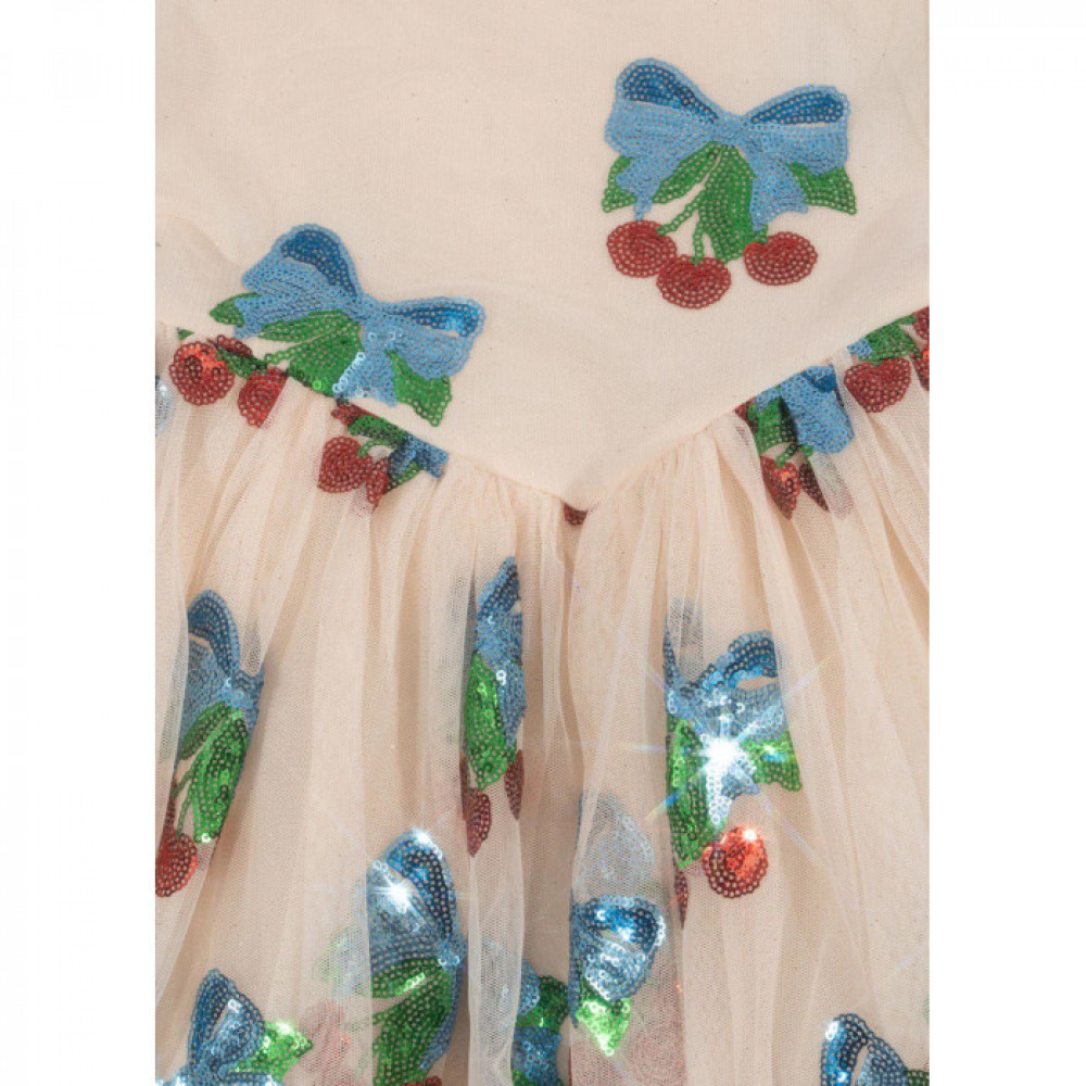 Сукня з фатину з паєтками по всій поверхні. Розроблений із рукавами- буфами та об’ємною спідницею, яка з’являється під час руху. Підкладка з м'якої бавовни для комфортної посадки.