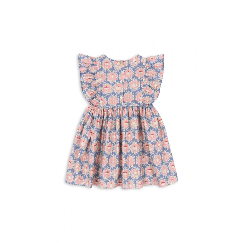 Виготовлена зі 100% органічної бавовни приємної на дотик якості серсакер, сукня Kim – це справжня літня класика. Легка та зручна з такими позачасовими деталями, як рукави з рюшами, люверси по низу та декоративні перламутрові ґудзики ззаду.
