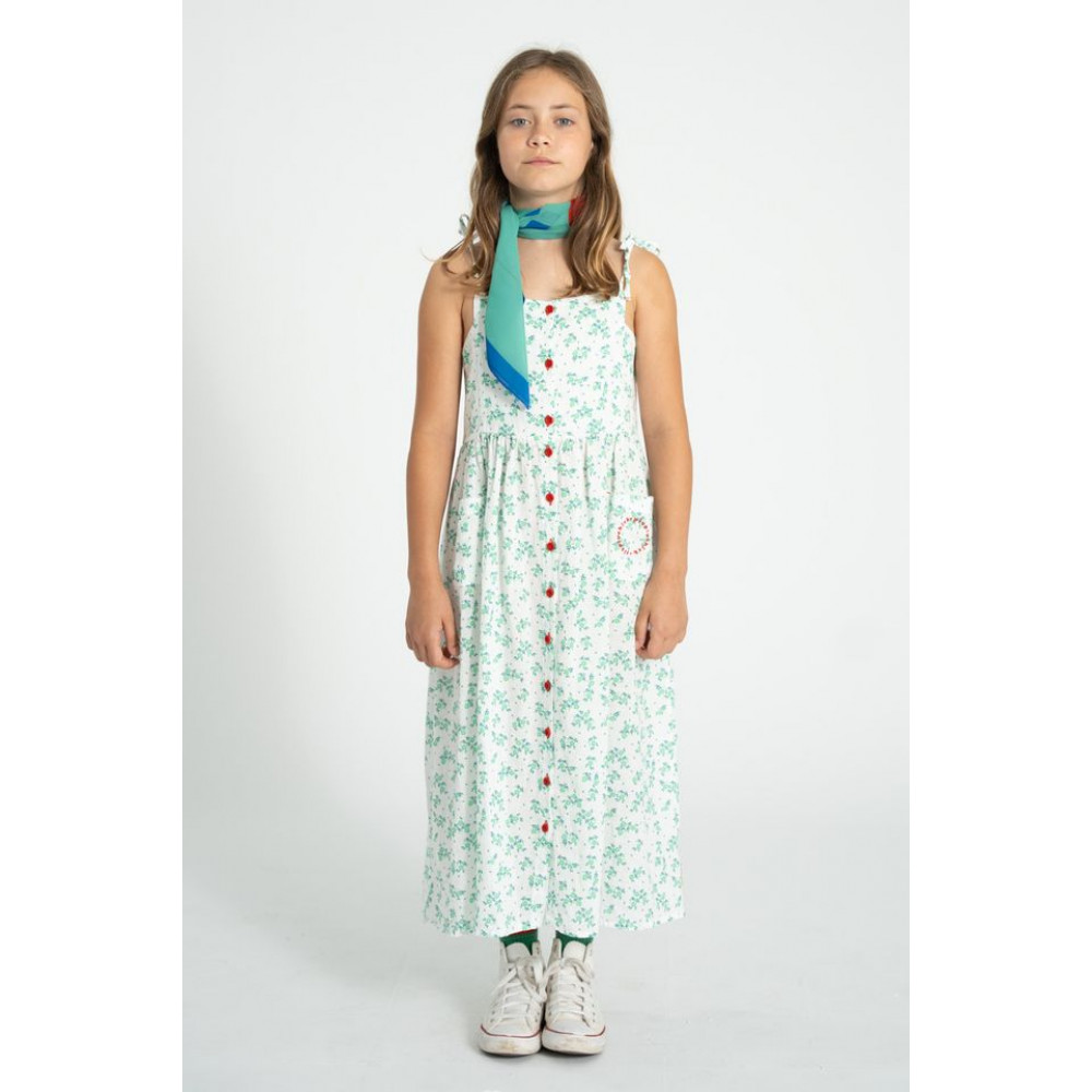 Довга сукня з тонкими бретельками на плечах та накладними кишенями. Декорована червоною вишивкою логотипу на одній кишені. Червоні ґудзики спереду. Прати в холодній воді (макс. 30ºC). Не відбілювати. Не сушити в сушильній машині. Прасувати в прохолодній воді (макс. 110°C). Хімчистка будь-яким розчинником, окрім трихлоретилену.