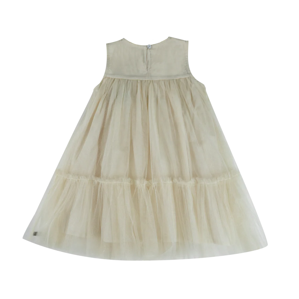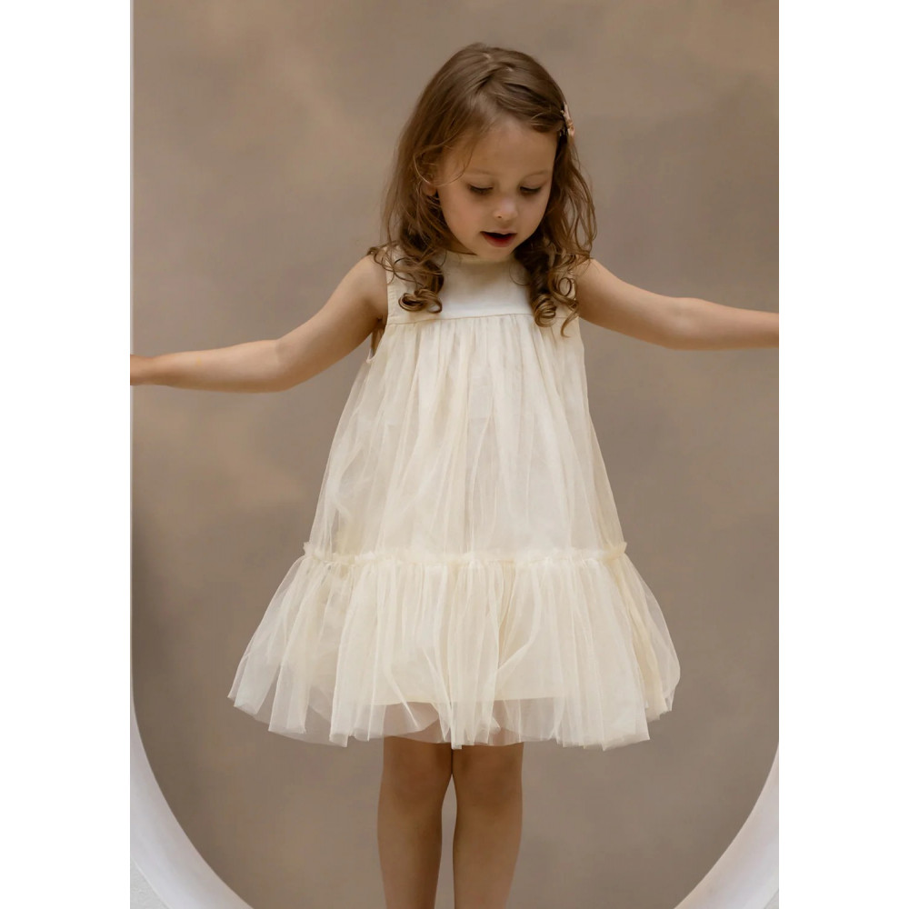 Створено для мрійників та спостерігачів за зірками! Сукня Negina – це вишукана насолода для теплих днів. Виготовлена з чудового фатину, вона має позачасовий силует та застібку на кнопку ззаду для зручного носіння. Ідеально підходить для садових вечірок, сімейних прогулянок чи повсякденного чарівного настрою.