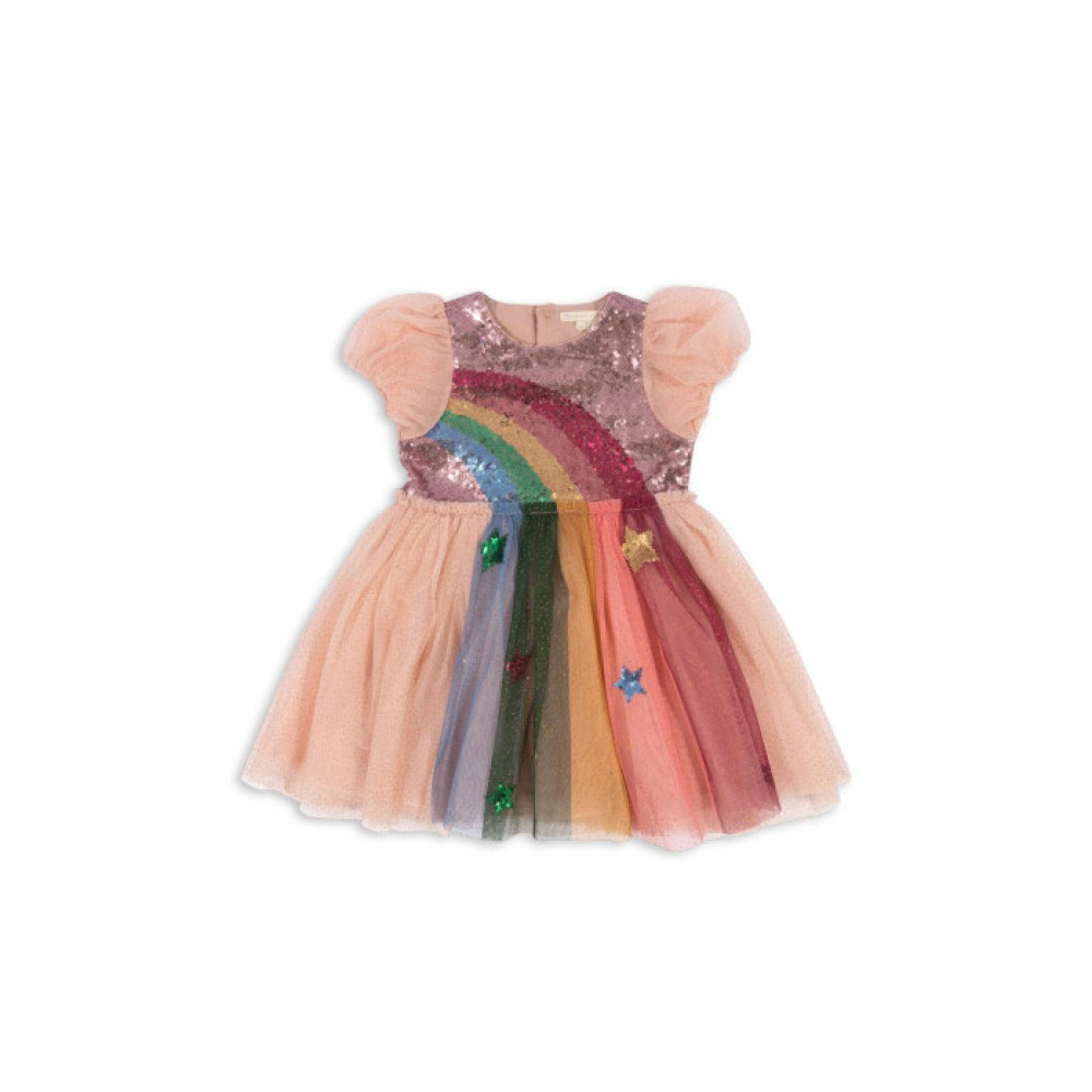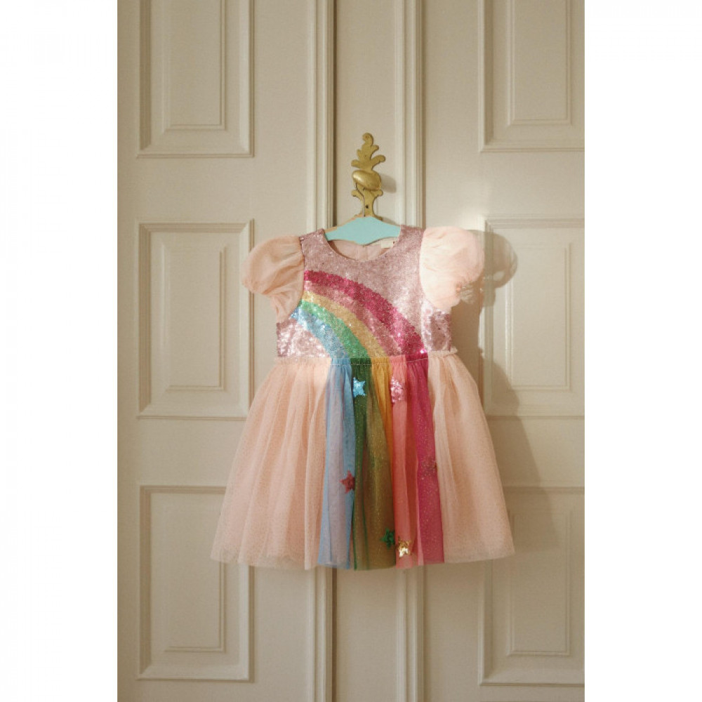 Виблискуйте всіма кольорами веселки. Наша сукня Odette створена, щоб виділятися в натовпі: доповнена шарами тюлю, блискучими блискітками та пишними рукавами.
