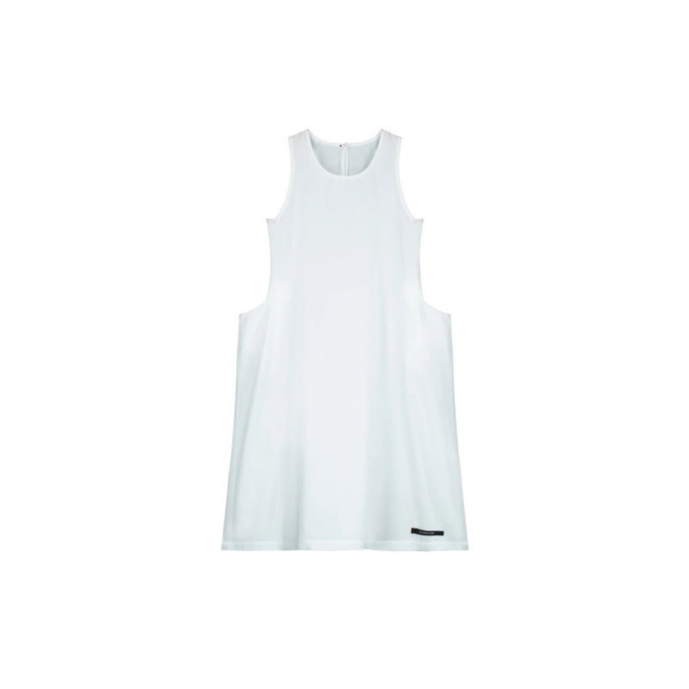Бавовняний виріб без рукавів класичного А-силуету, незамінний одяг у чистому білому кольорі є основним елементом будь-якого гардеробу. Бічні широкі кишені.
