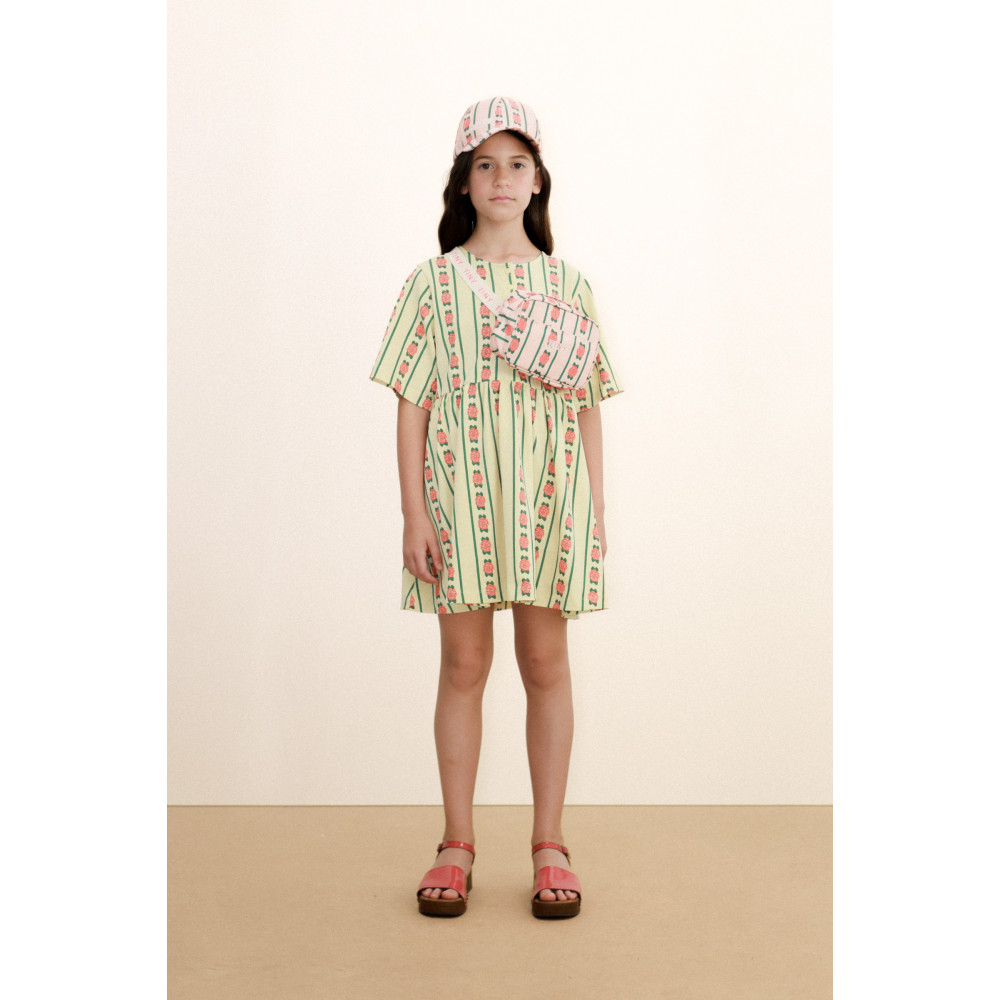 Ця сукня з принтом троянд – ідеальне поєднання комфорту та стилю. Виготовлена зі 100% органічної бавовни, ця сукня є сучасним доповненням. Розстібка спереду додає їй практичності та невимушеного шарму.