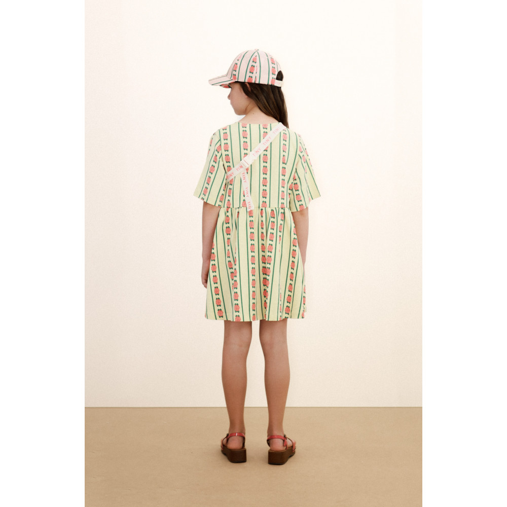 Ця сукня з принтом троянд – ідеальне поєднання комфорту та стилю. Виготовлена зі 100% органічної бавовни, ця сукня є сучасним доповненням. Розстібка спереду додає їй практичності та невимушеного шарму.