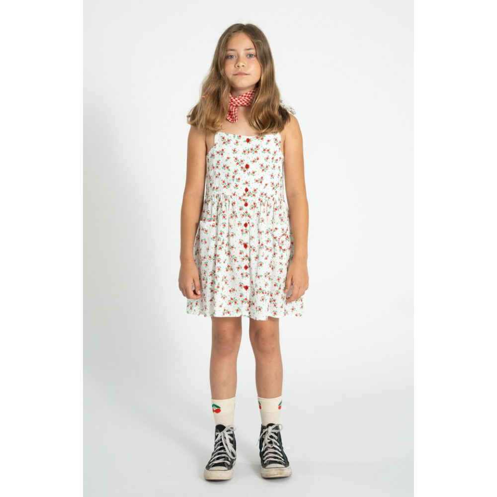 Коротка сукня з тонкими бретельками на плечах та накладними кишенями, одна з яких має червоний вишитий логотип. Червоні ґудзики спереду. Прати в холодній воді (макс. 30ºC). Не відбілювати. Не сушити в сушильній машині. Прасувати в прохолодній воді (макс. 110°C). Хімчистка будь-яким розчинником, окрім трихлоретилену.