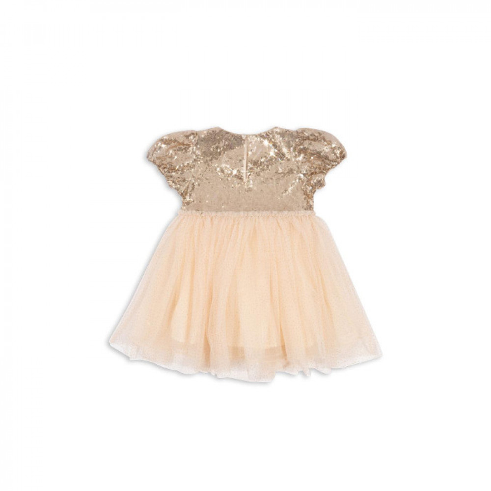 Блискуча сукня з короткими рукавами- буфами, багатошаровою спідницею з фатину та декоративними паєтками змусить вас стати «вау»!