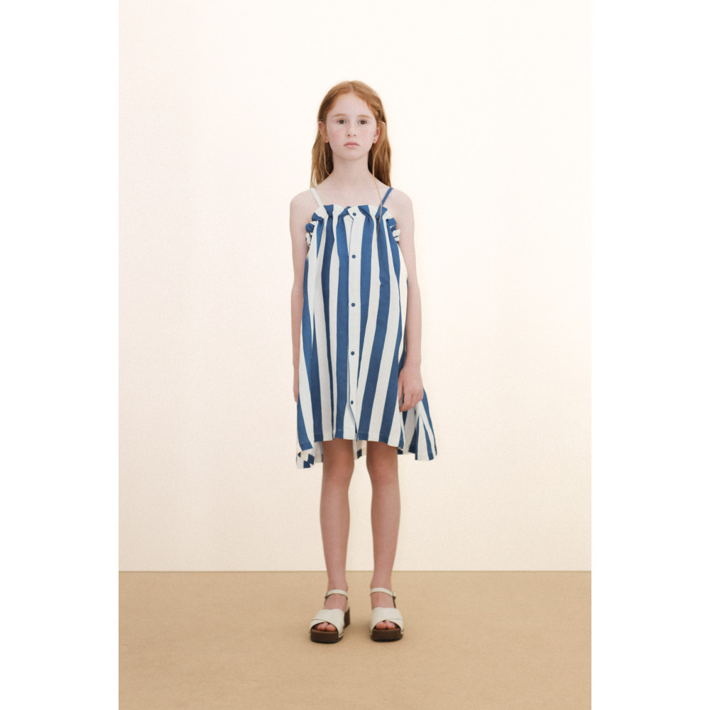 Ця смугаста сукня – ідеальне поєднання стилю та комфорту. Виготовлена з м’якої, дихаючої бавовняної суміші, вона має вільний, прямий крій, що забезпечує комфорт протягом усього дня. Передні бретельки та ґудзики роблять її легкою в носінні, додаючи їй практичного та стильного вигляду. Ідеально підходить для щоденного носіння або будь-якої повсякденної події, ця сукня – свіжий та комфортний варіант для теплих днів.