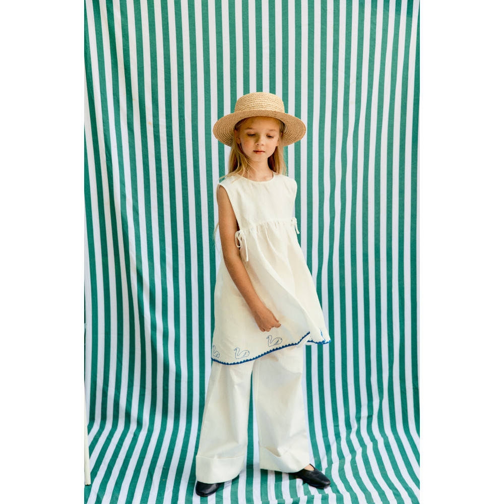 Ця вишита сукня Swans – ідеальне поєднання стилю та комфорту. Виготовлена з м’якої, дихаючої бавовняної суміші, вона забезпечує свіжість та комфорт протягом усього дня. Круглий виріз горловини та застібка на ґудзики ззаду полегшують одягання, а бічні зав’язки дозволяють регулювати збирання, додаючи унікального стилю. Безрукавна та ідеальна для теплих днів, ця сукня поєднує елегантність та функціональність в одному виробі.