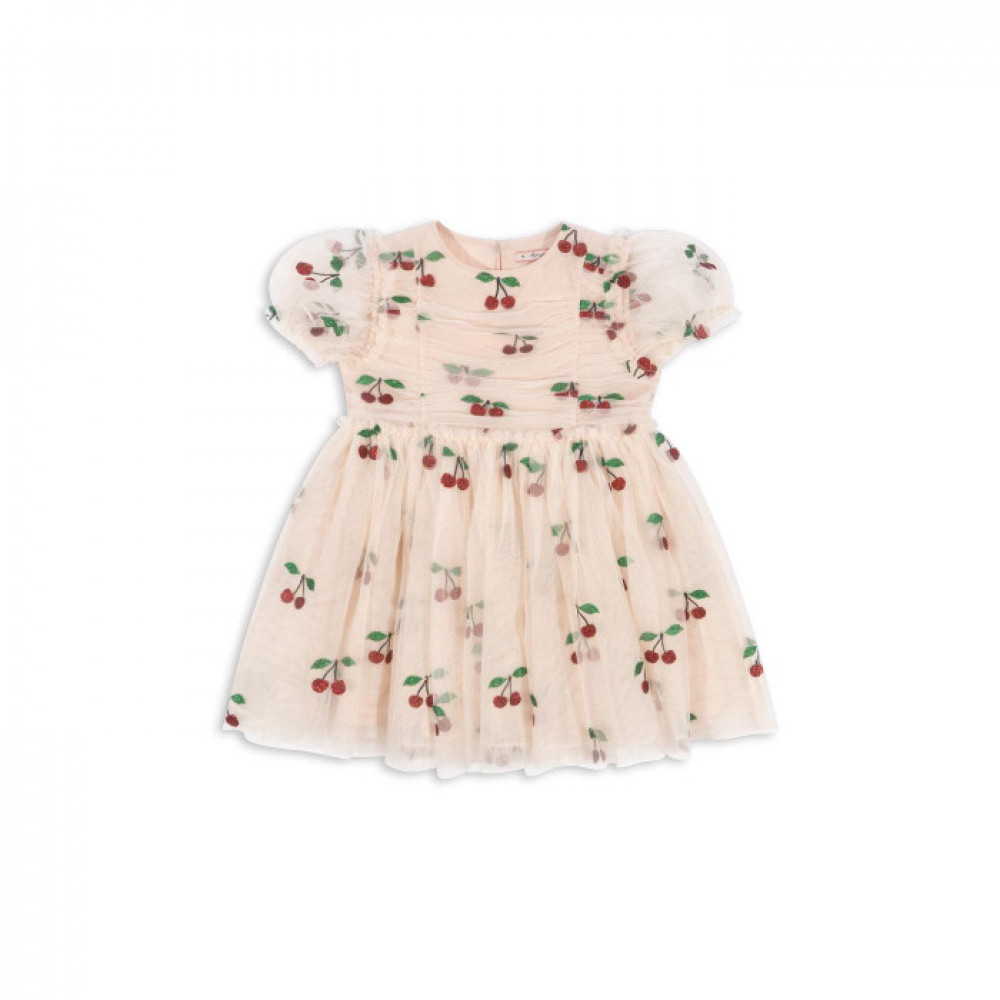 Сукня Tullie має рукави-буфи, верхню частину з рюшами з прозорого фатину та об'ємну спідницю.
