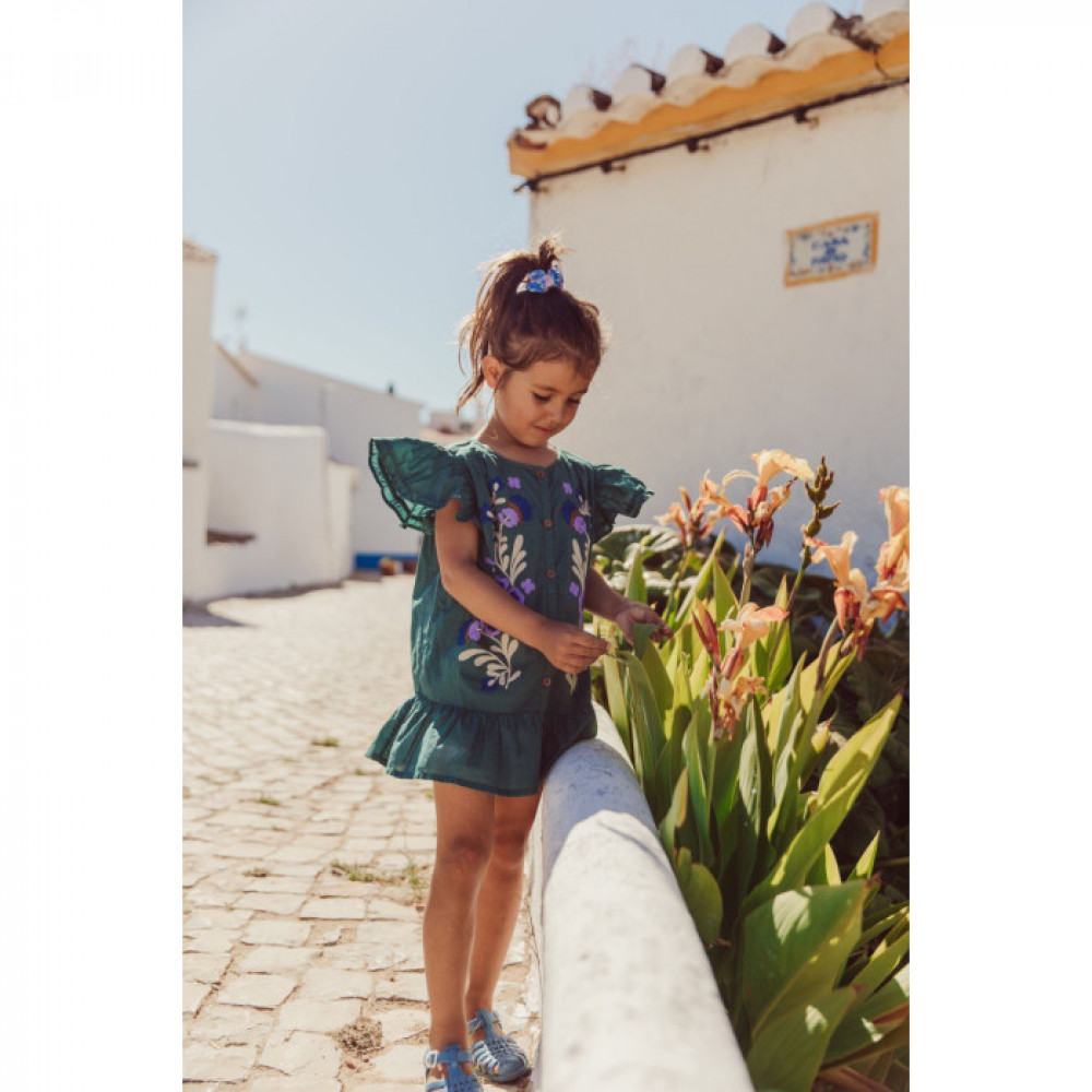 Коротка сукня з оборчастими рукавами та вишивкою. Можна прати в пральній машині 30 градусів