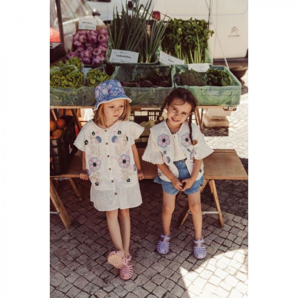 Коротка сукня з оборчастими рукавами та вишивкою. Можна прати в пральній машині 30 градусів