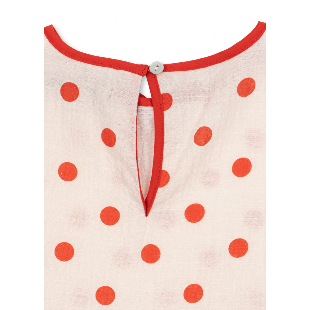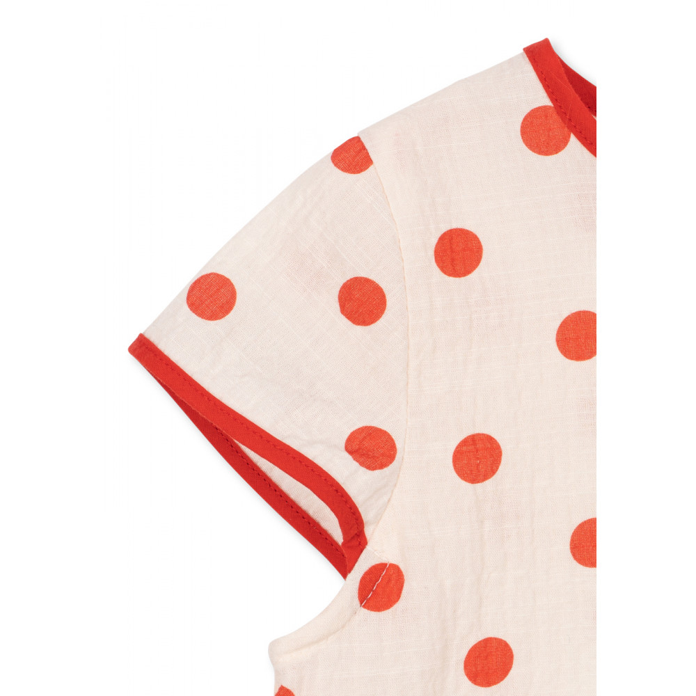 Наша сукня Vivo, виготовлена у вільному силуеті з декоративними цятками, – ідеальний літній виріб. Виготовлена з м’якої органічної бавовни, вона має короткі рукави, милі контрастні низи та привабливу розкльошену спідницю.