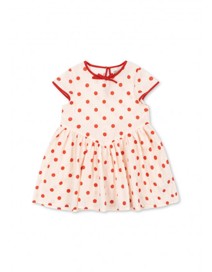 Наша сукня Vivo, виготовлена у вільному силуеті з декоративними цятками, – ідеальний літній виріб. Виготовлена з м’якої органічної бавовни, вона має короткі рукави, милі контрастні низи та привабливу розкльошену спідницю.