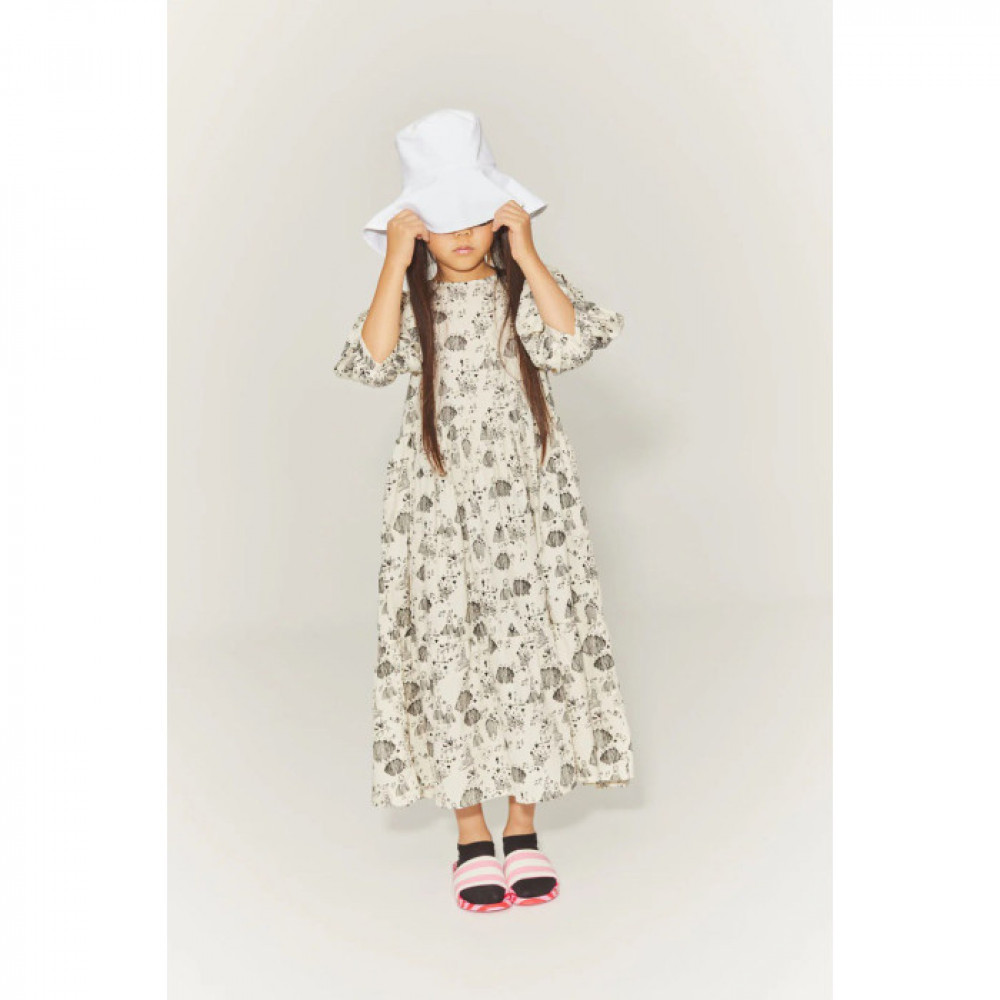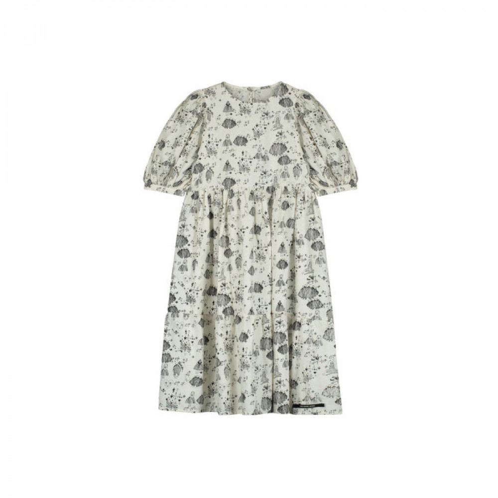 Чарівні принти, які викликають світ магії, грайливості та привабливої привабливості. Спідниця плавно спадає з високої талії, випромінюючи суміш жіночності та витонченості. Злегка роздуті рукава довжиною до ліктя. Спадає на середину гомілки. Ця сукня перенесе вас у царство, наповнене чудесами, магією та фантазією.