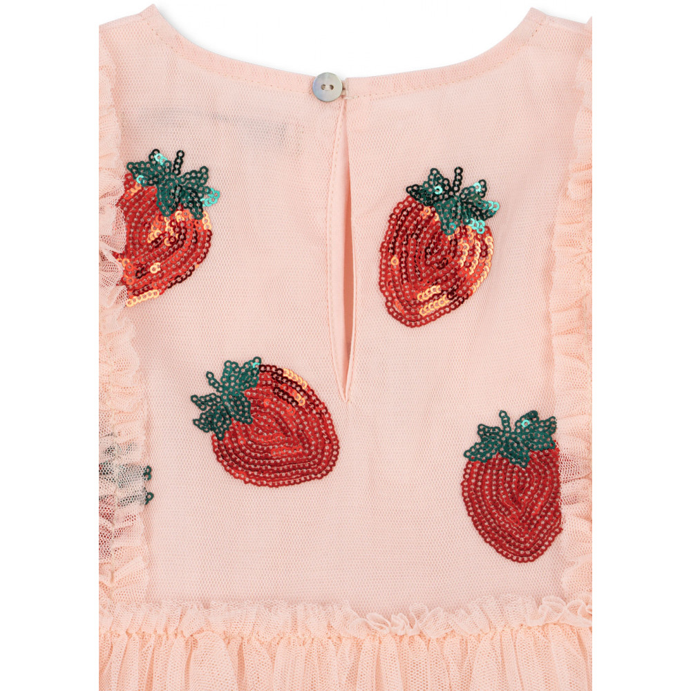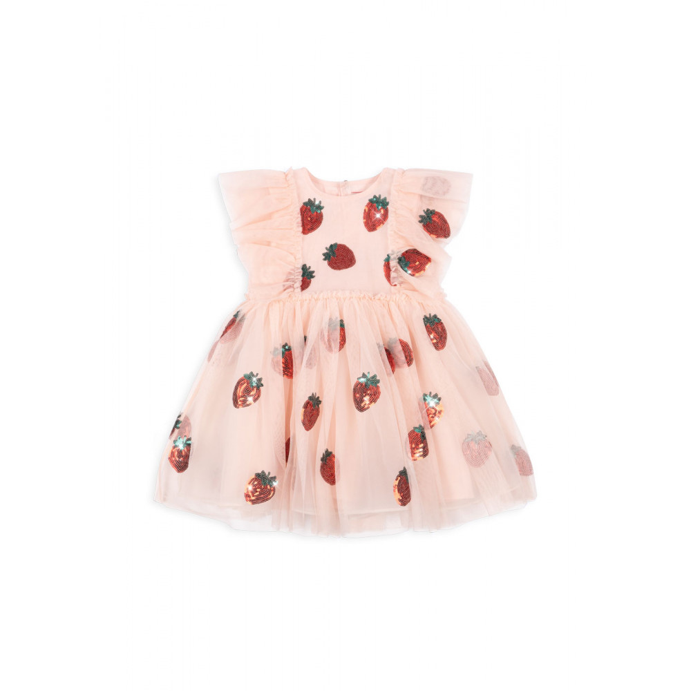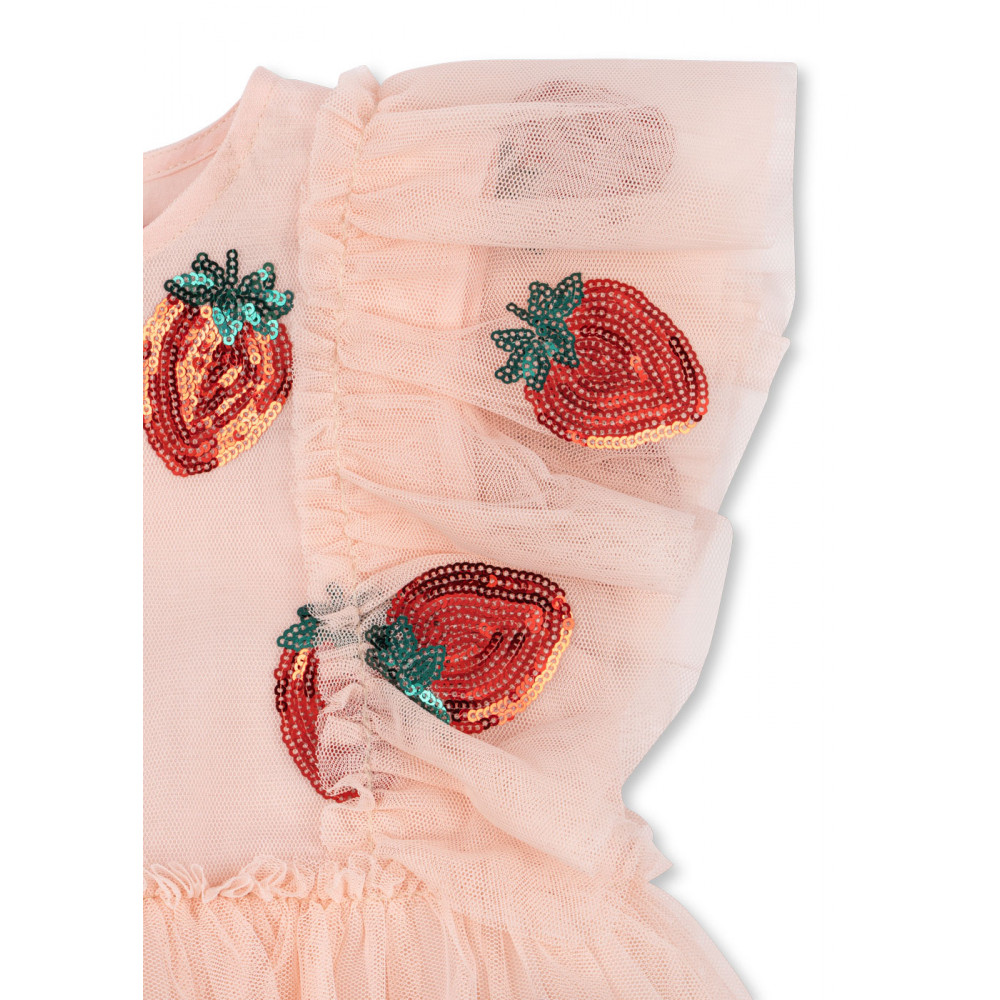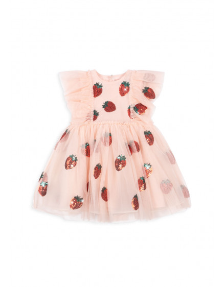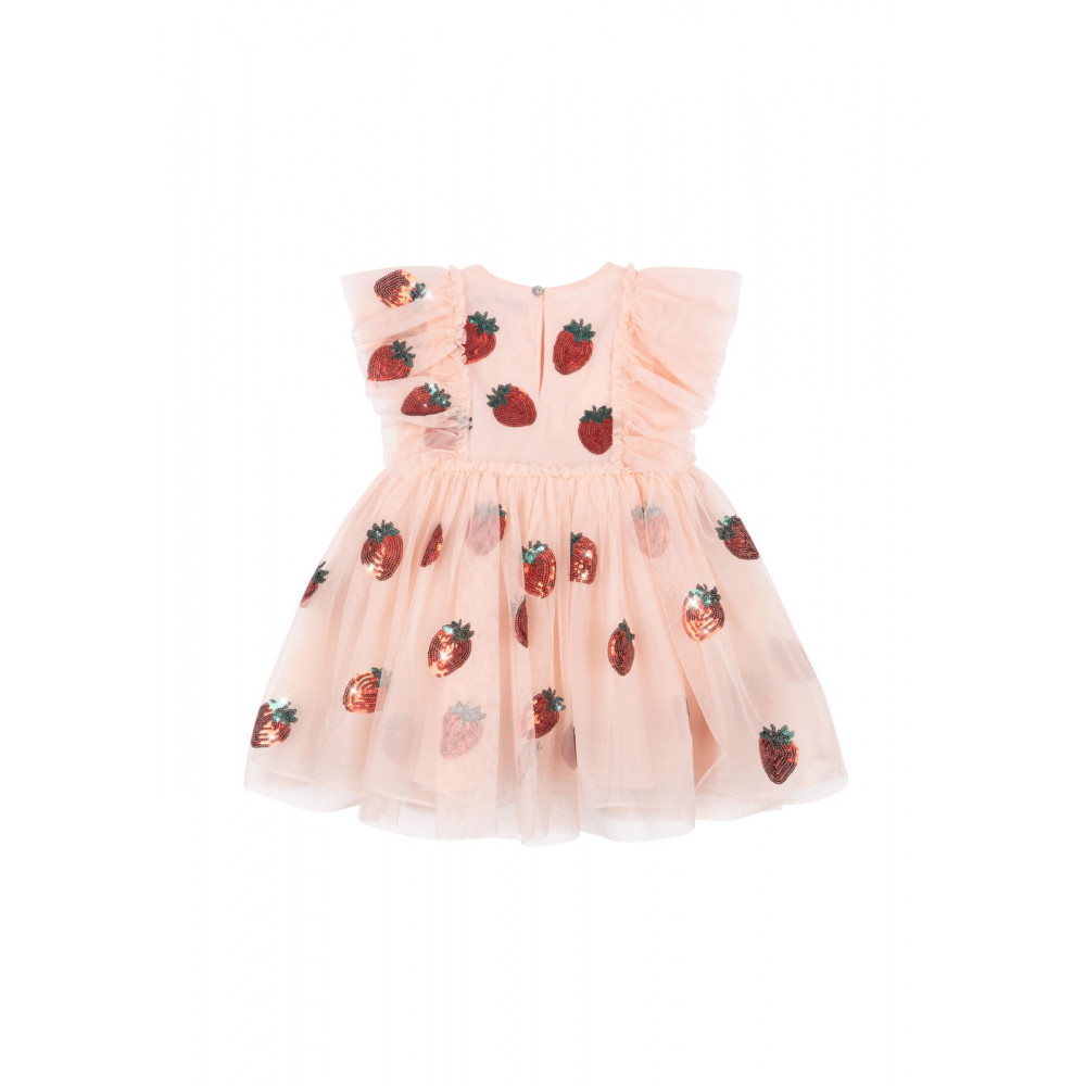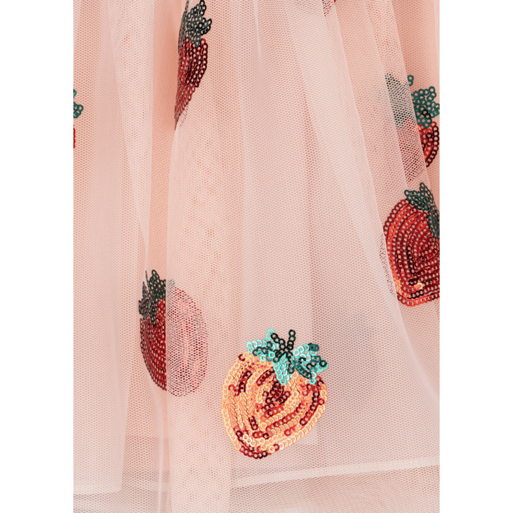 Об'ємна фатинова сукня з короткими фатиновими рукавами. Сукня має струмливий силует зі спідницею, яка майорить та коливається під час гри та бігу, та прикрашена декоративною вишивкою з блискіток для ідеального завершального штриха. Підкладка з м'якої бавовни для комфортного носіння.