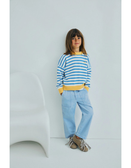 Класичні штани баґґі з випраного деніму з регульованим поясом на внутрішній еластичній стрічкі, кишенями з вишитим верхом та вишивкою бренду на спині для невимушеного та стильного образу. Виготовлено в Португалії