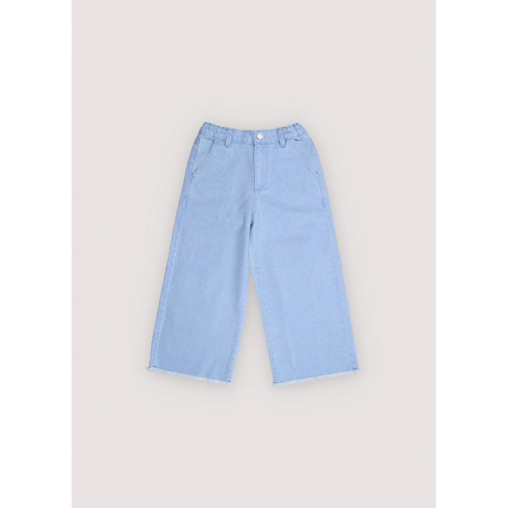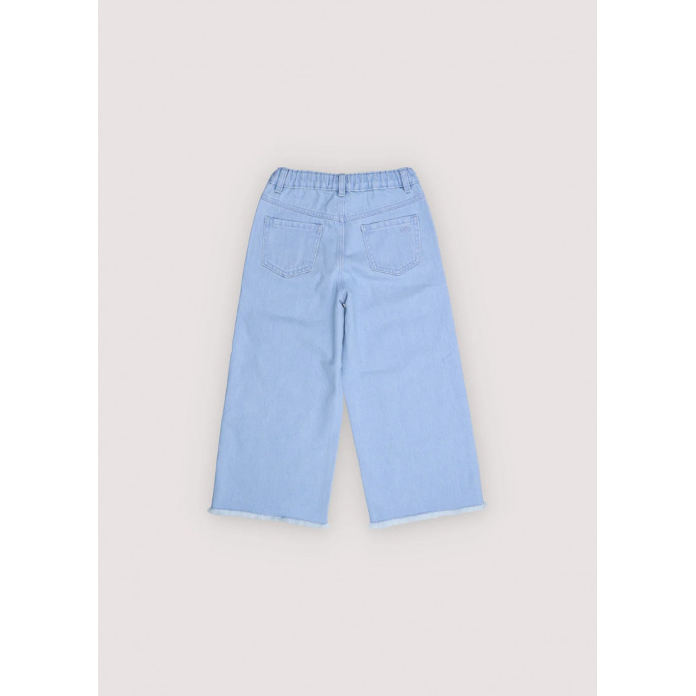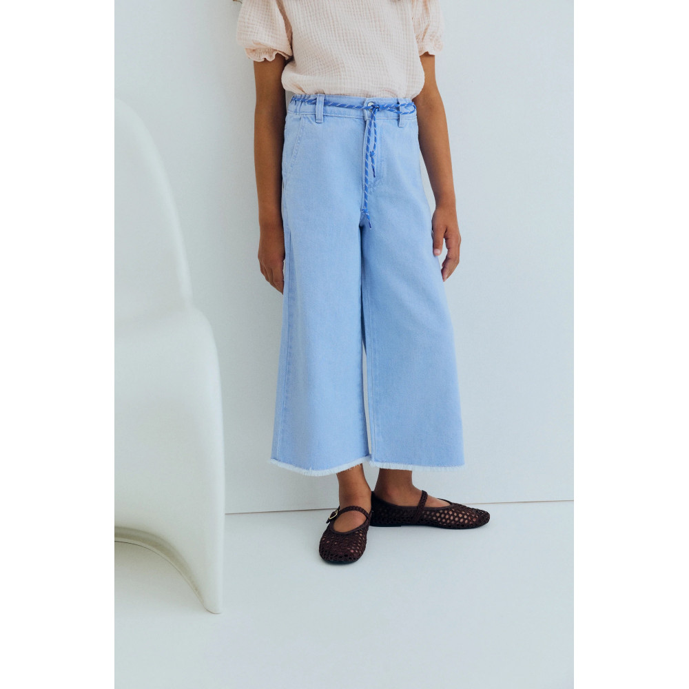 Широкі джинсові штани з м'яким випраним оздобленням, прямими штанинами та регульованим поясом з внутрішньою гумкою. Мають передні та задні кишені та тонку вишиту деталь на спині. Виготовлено в Португалії.