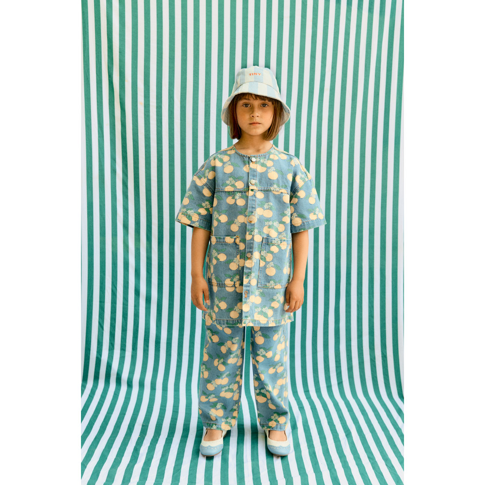 Ці штани класичного крою з зображенням «Оранжеві апельсини» виготовлені з міцної 100% бавовняної тканини. Завдяки прямому силуету, регульованому поясу та застібці на кнопки, вони забезпечують комфортну та практичну посадку. Контрастна строчка та грайливий принт додають дизайну свіжості та самобутності.