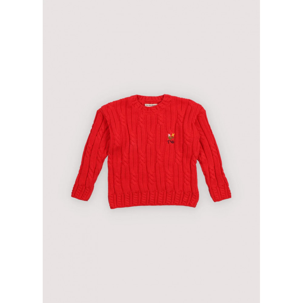 Светр з косами з ніжними косами на комірі, манжетах та подолі, з грайливою квітковою вишивкою на грудях. Ідеально поєднується з шортами в тон, створюючи завершений образ. Зроблено в Португалії