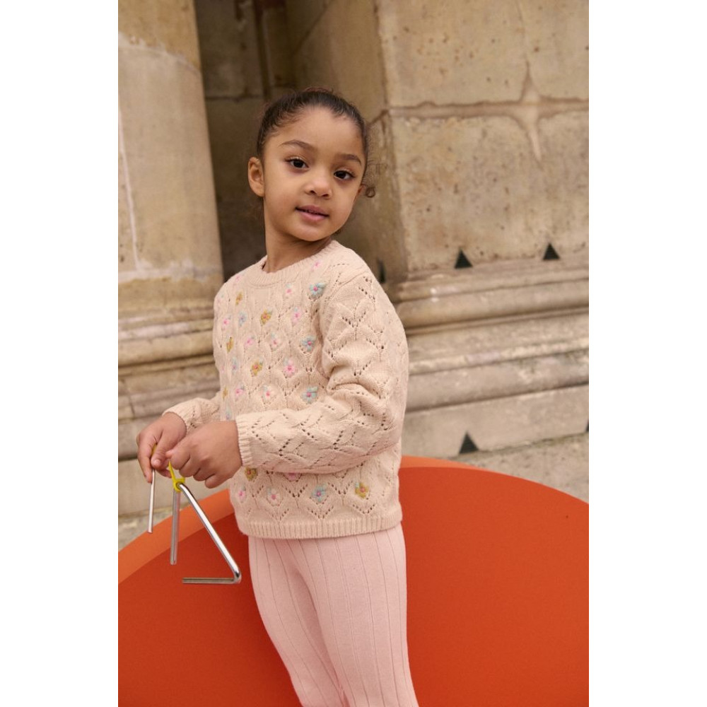 Цей в'язаний светр від Louise Misha водночас ніжний та зручний. Цей в'язаний виріб прикрашений декоративними стібками та ажурними деталями. Барвиста квіткова вишивка виконана вручну по всій поверхні, крім спинки. Нам подобаються деталі в'язаних гачком фестончатих оздоблень з боків.