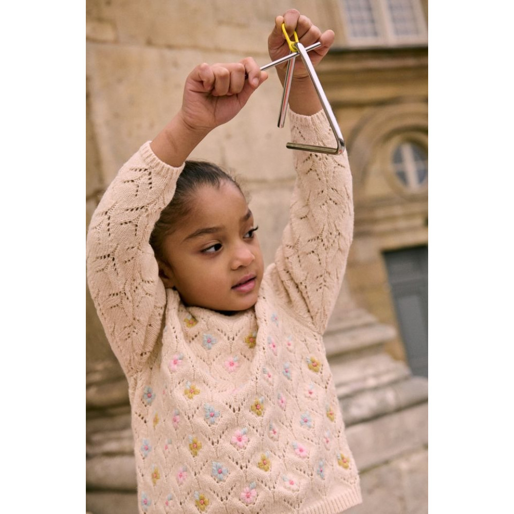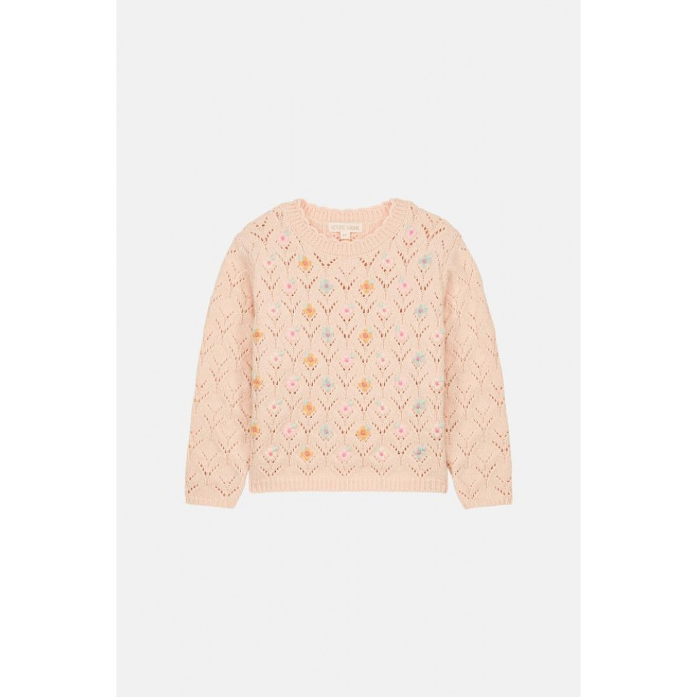 Цей в'язаний светр від Louise Misha водночас ніжний та зручний. Цей в'язаний виріб прикрашений декоративними стібками та ажурними деталями. Барвиста квіткова вишивка виконана вручну по всій поверхні, крім спинки. Нам подобаються деталі в'язаних гачком фестончатих оздоблень з боків.