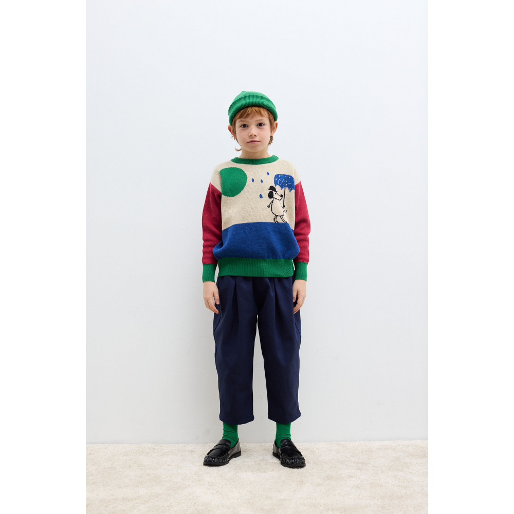 Цей затишний в'язаний светр у трьох ніжних кольорах розповідає чарівну історію — маленького песика, який тримає парасольку, готового до будь-яких пригод у дощовий день. Виготовлений з ніжної органічної бавовни, він дарує тепло та комфорт з грайливим, художнім відтінком.