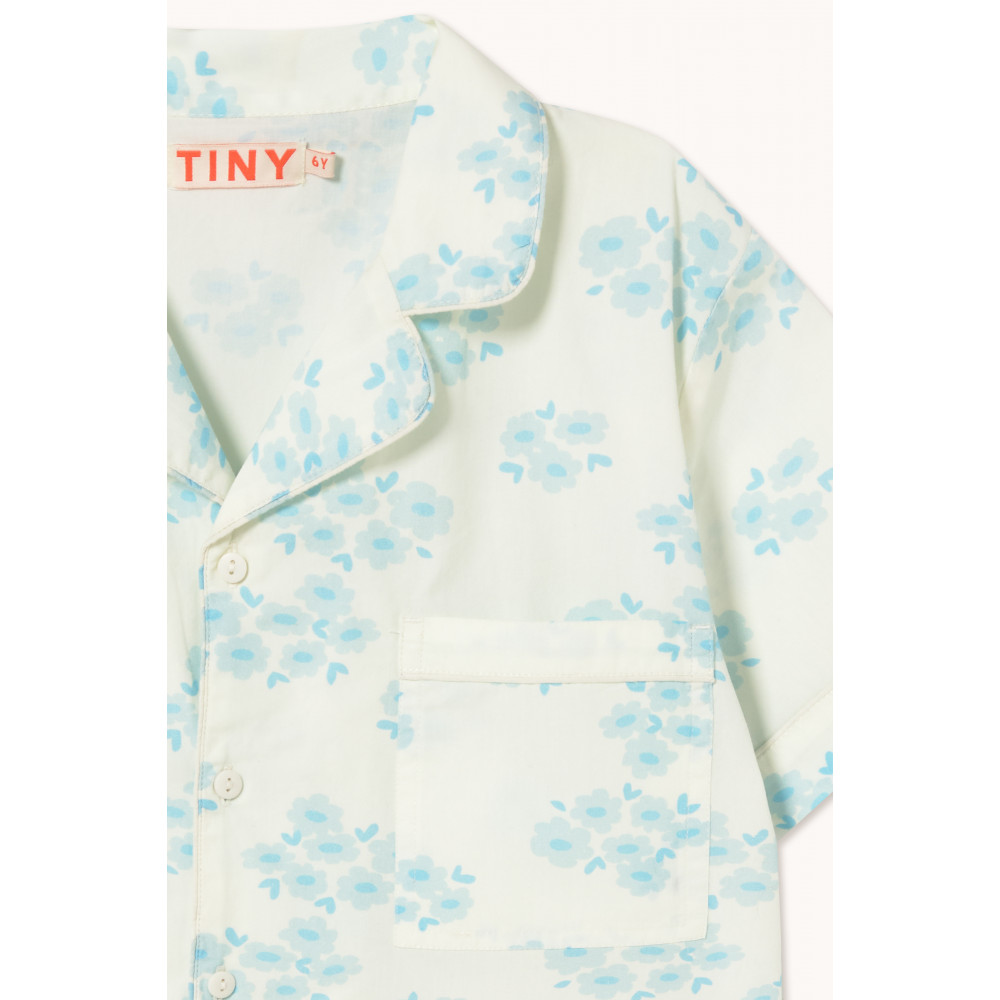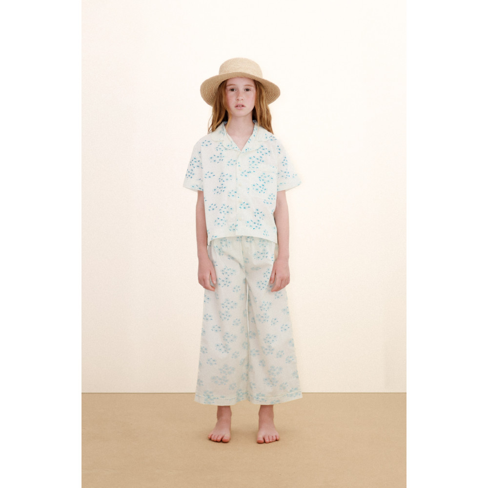 Комплект Blossoms вирізняється вільним, зручним силуетом, виготовленим зі 100% бавовни. Верх має короткі рукави та застібку на ґудзики спереду, а штани мають прямий крій, еластичний пояс та регульований шнурок для ідеальної посадки. Також до комплекту входить сумка, ідеальна для зберігання комплекту або його перенесення на нічліг.