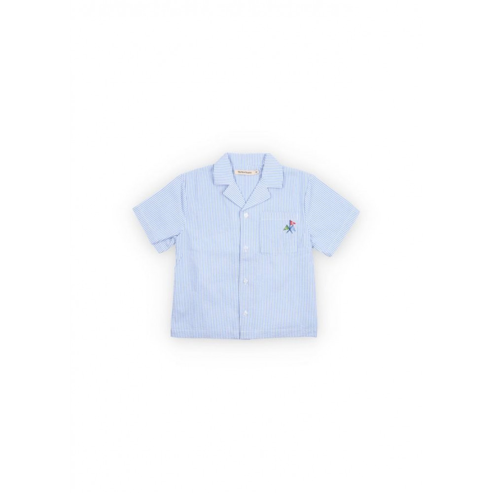 Сорочка Almond Seersucker Stripe – це легкий літній варіант з ніжно-блакитної бавовняної смугастої тканини Seersucker.