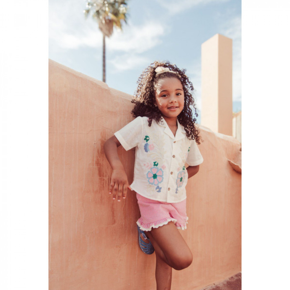 Сорочка вільного крою з вишивкою та класичним коміром. Вкорочений силует.