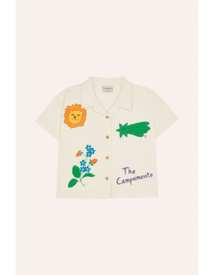 Сорочка з короткими рукавами, що розстібаються спереду на дерев'яних ґудзиках. Прикрашена різними елементами, нанесеними по всій поверхні. Виготовлена з м'якої бавовняної тканини, ідеально підходить для теплих літніх днів.