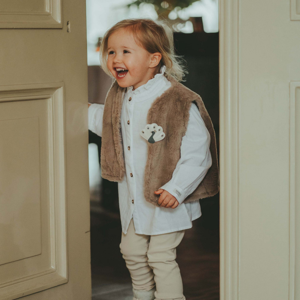 Гарненька, як пролісок! Додайте нотку елегантності до вбрання вашої малечі за допомогою чудової блузки Fini. Завдяки чарівному коміру з рюшами, пишним рукавам та застібці на ґудзики спереду, ця блузка випромінює стиль та ідеально поєднується з будь-яким предметом гардеробу вашої малечі.