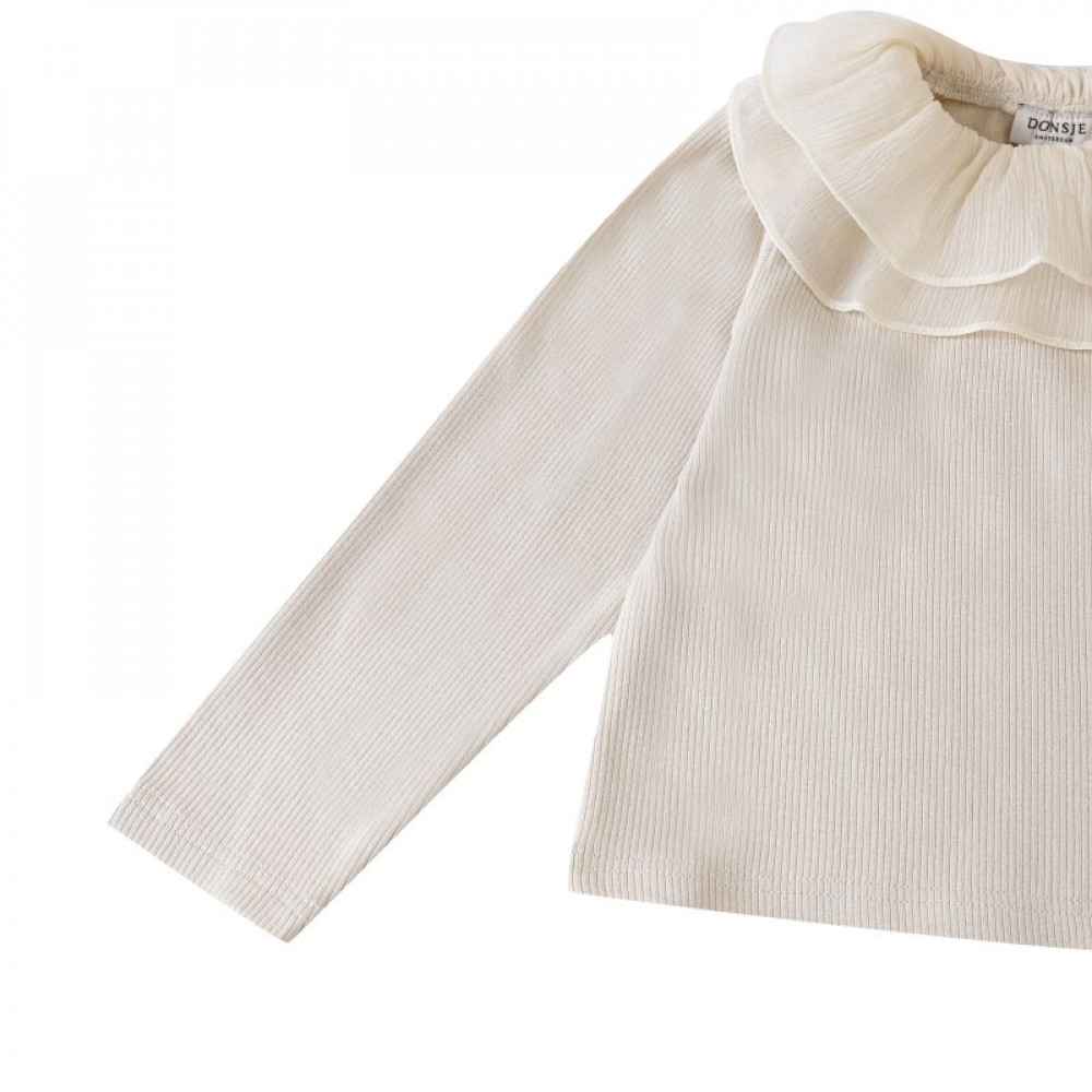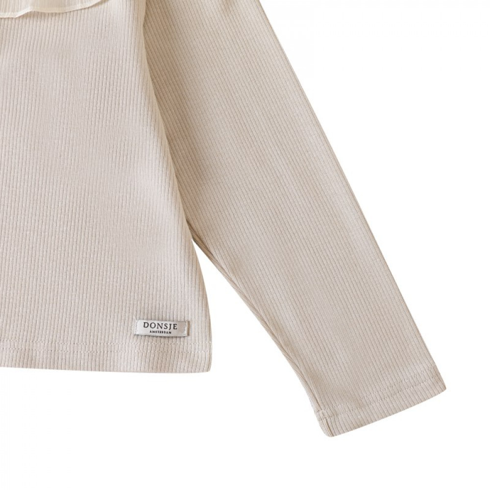 Чудова блузка від Donsje з миленьким комірцем у світло-бежевому кольорі. Елегантна блузка з довгими рукавами має легку ребристу текстуру та робить кожен образ унікальним.