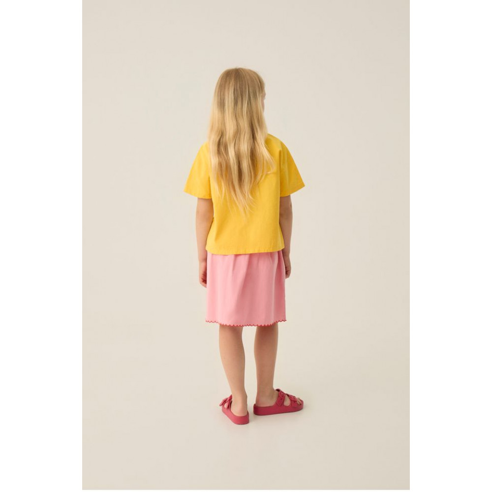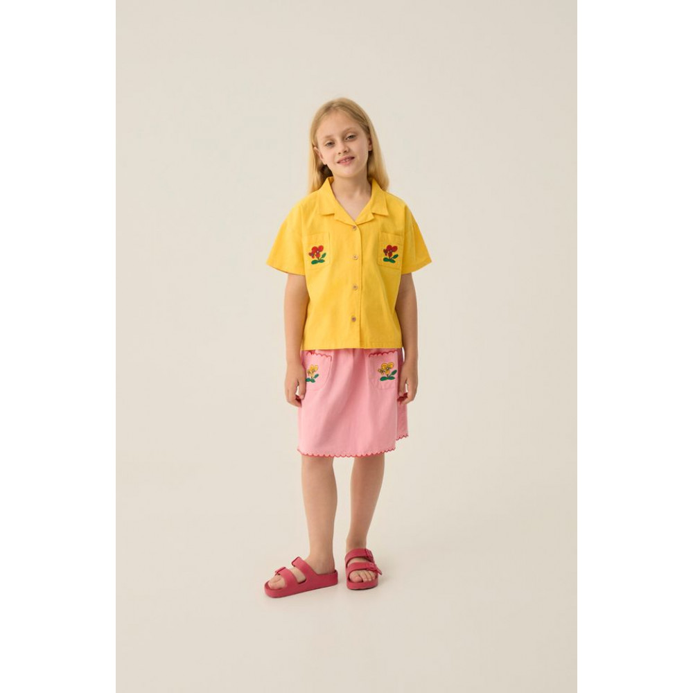 Сорочка з короткими рукавами, розстібається спереду дерев'яними ґудзиками. На кишенях вишиті квіти. Виготовлена з м'якої бавовняної тканини, ідеально підходить для теплих літніх днів.